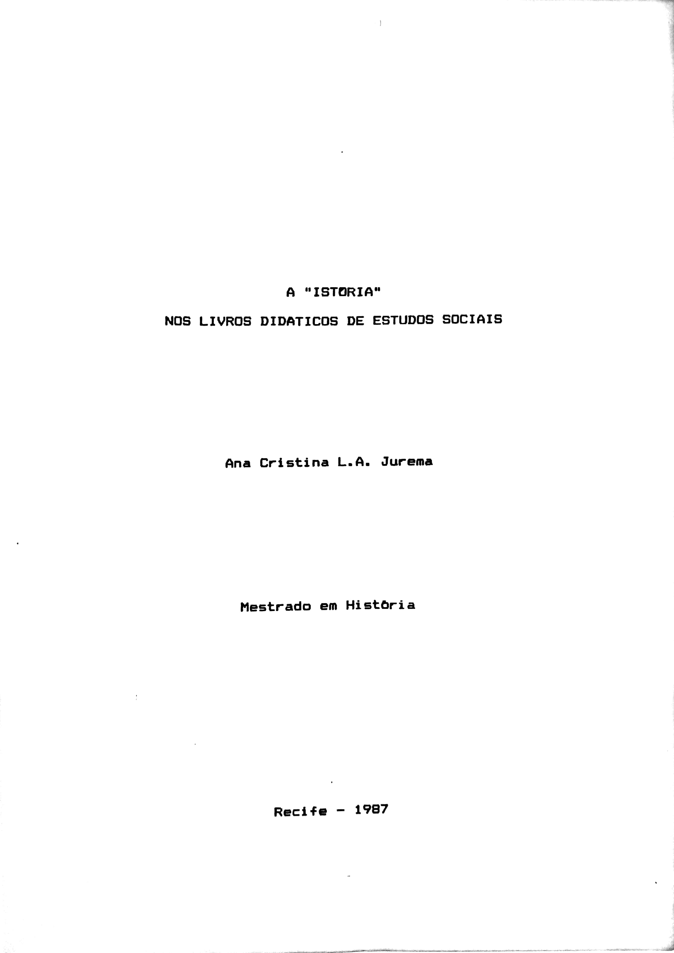 A "Istória" nos Livros Didáticos de Estudos Sociais