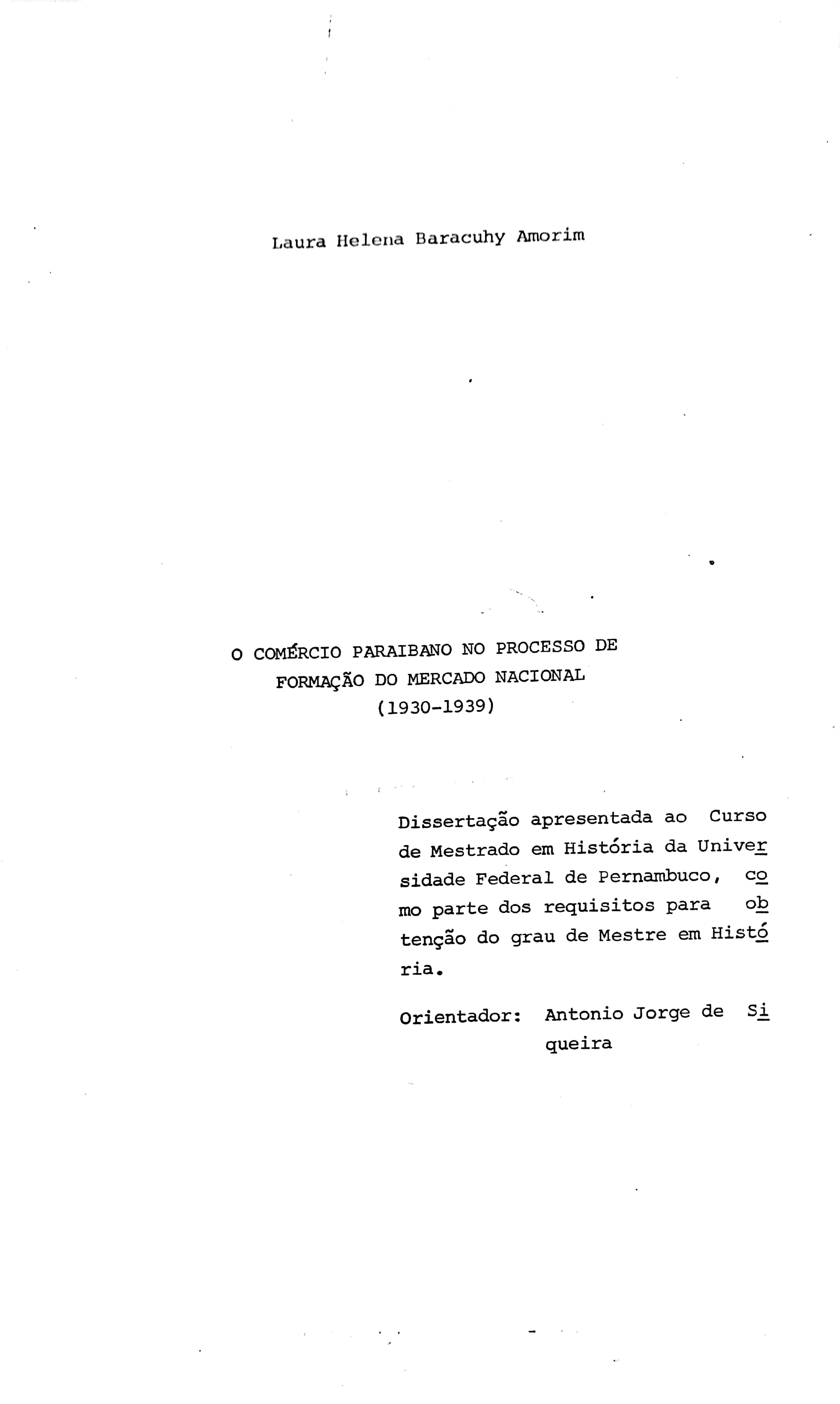 O Comércio Paraibano no Processo de Formação do Mercado Nacional (1930/1939)