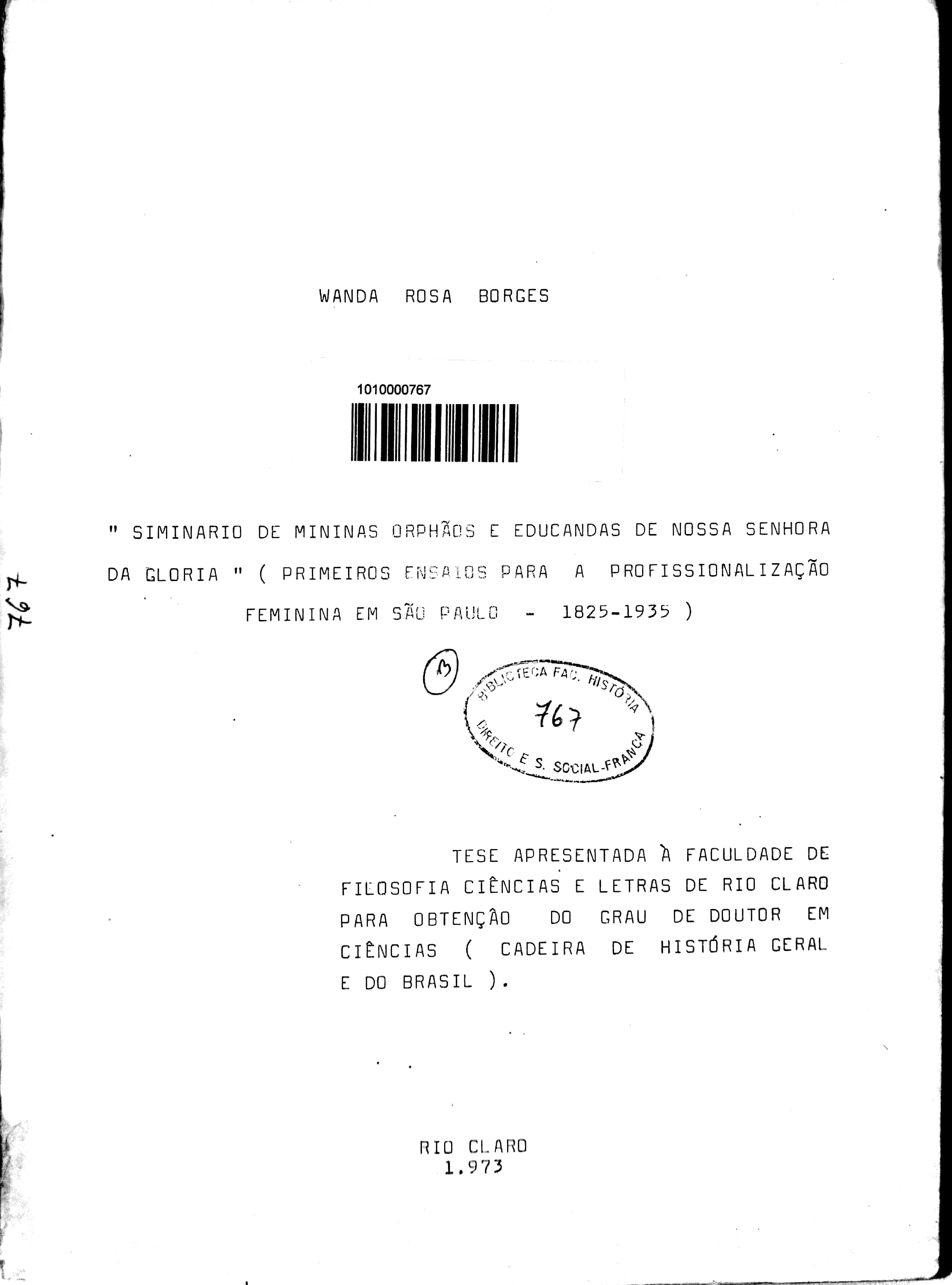 Wanda Rosa Borges (Orientador: Laima Mesgravis)