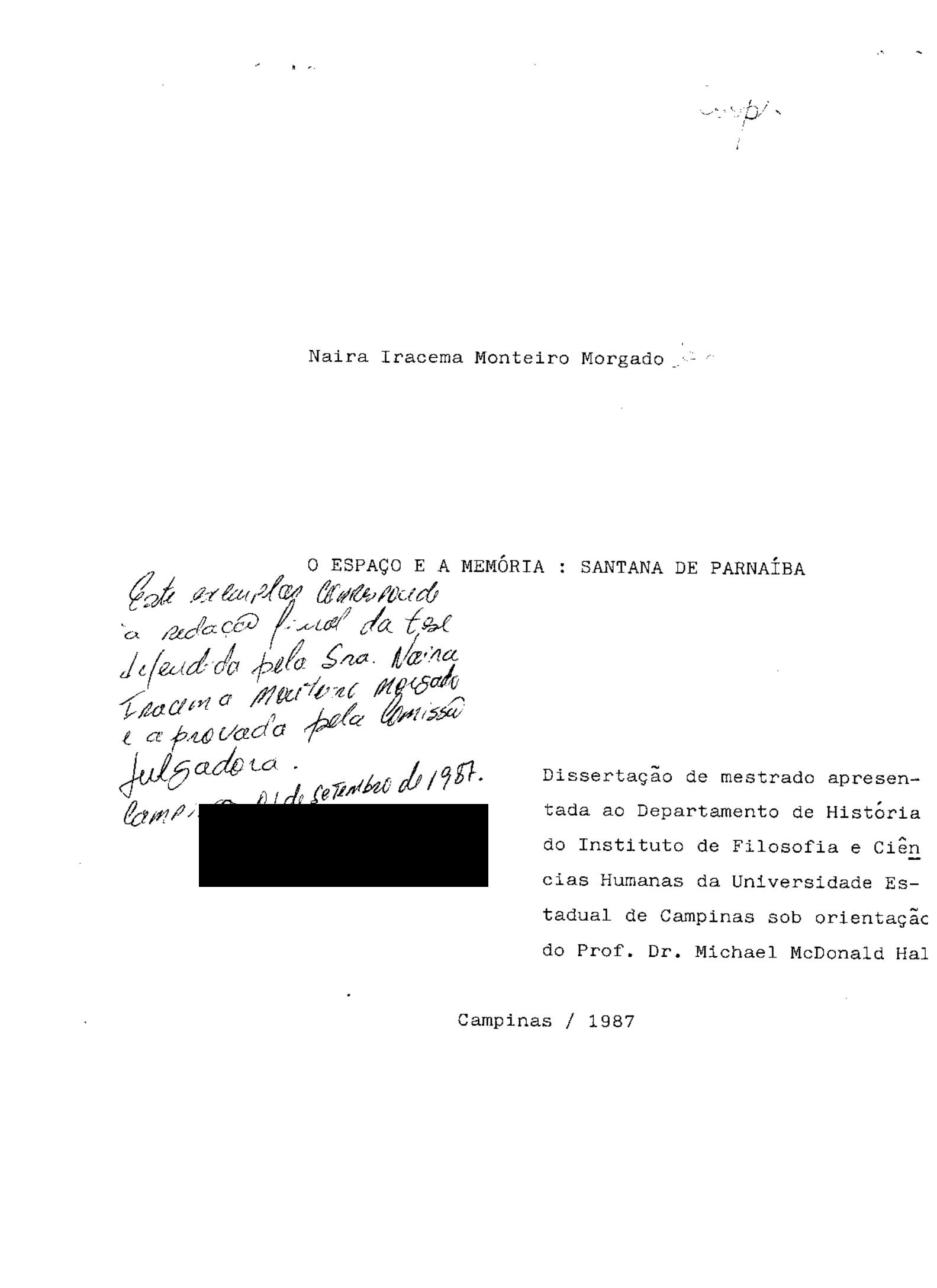 Naira Iracema Monteiro Morgado (Orientador: Michael McDonald Hall)