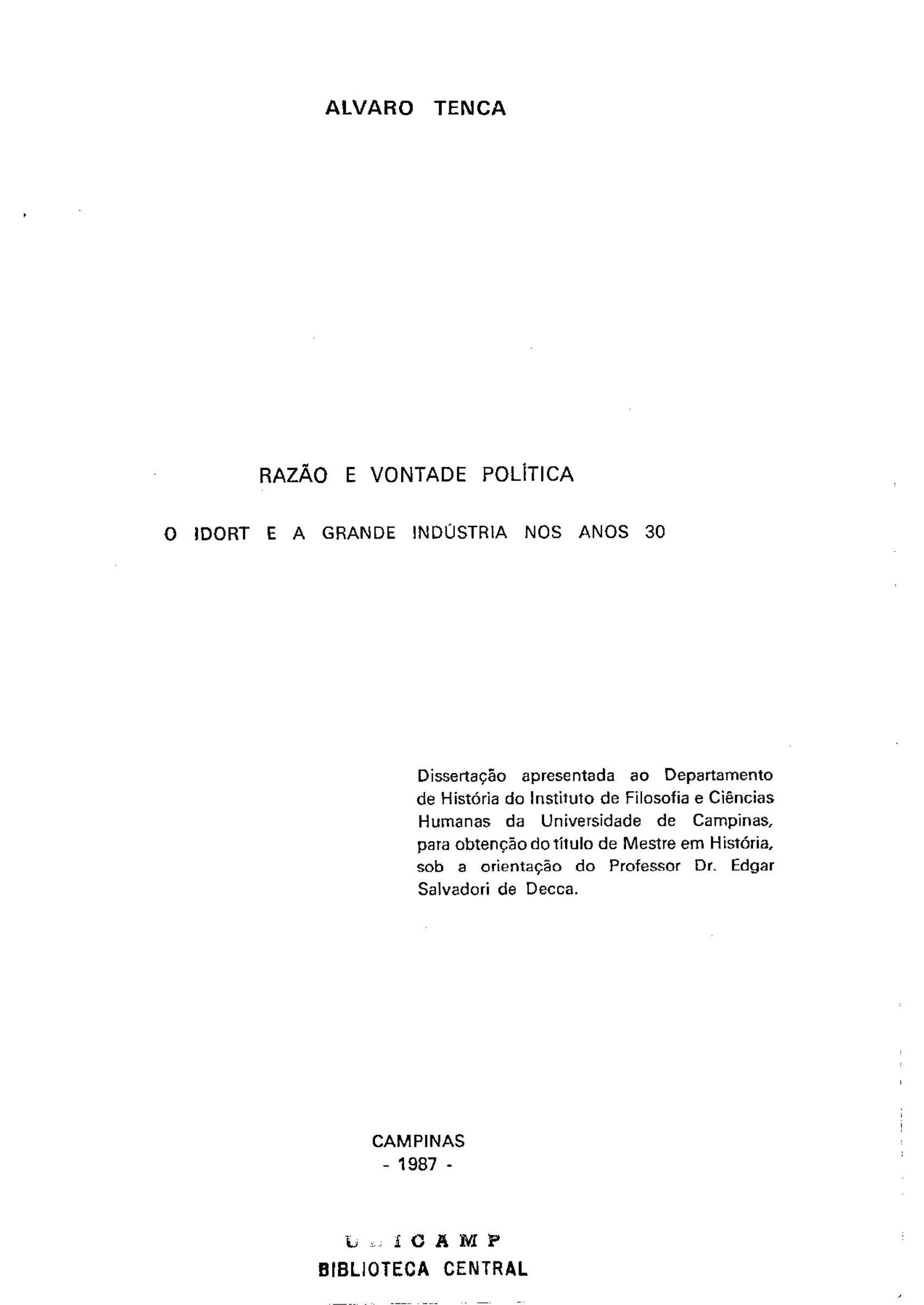 Razão e Vontade Política: O IDORT e a Grande Indústria nos Anos 30