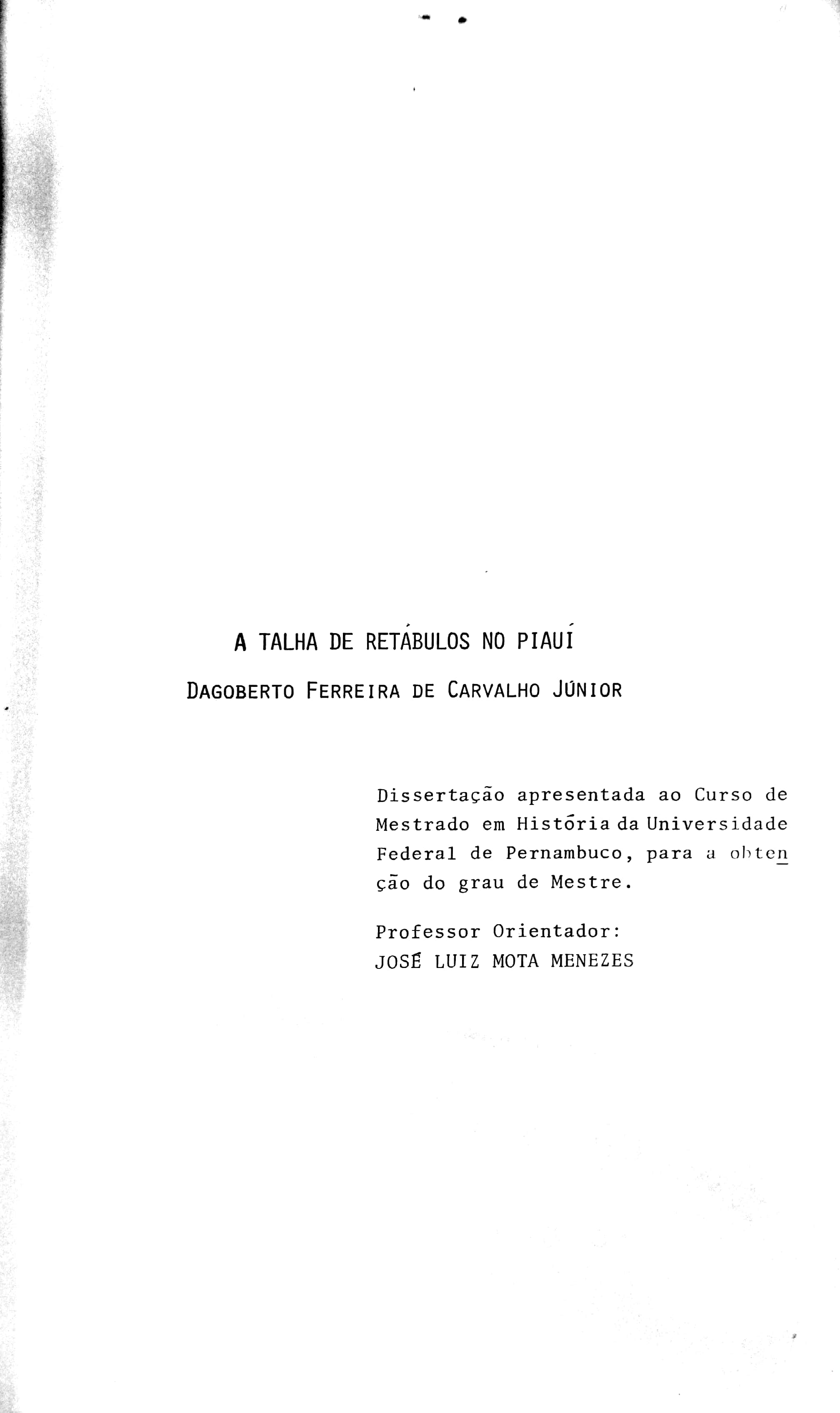 Dagoberto Ferreira de Carvalho Jr (Orientador: José Luiz da Mota Menezes)