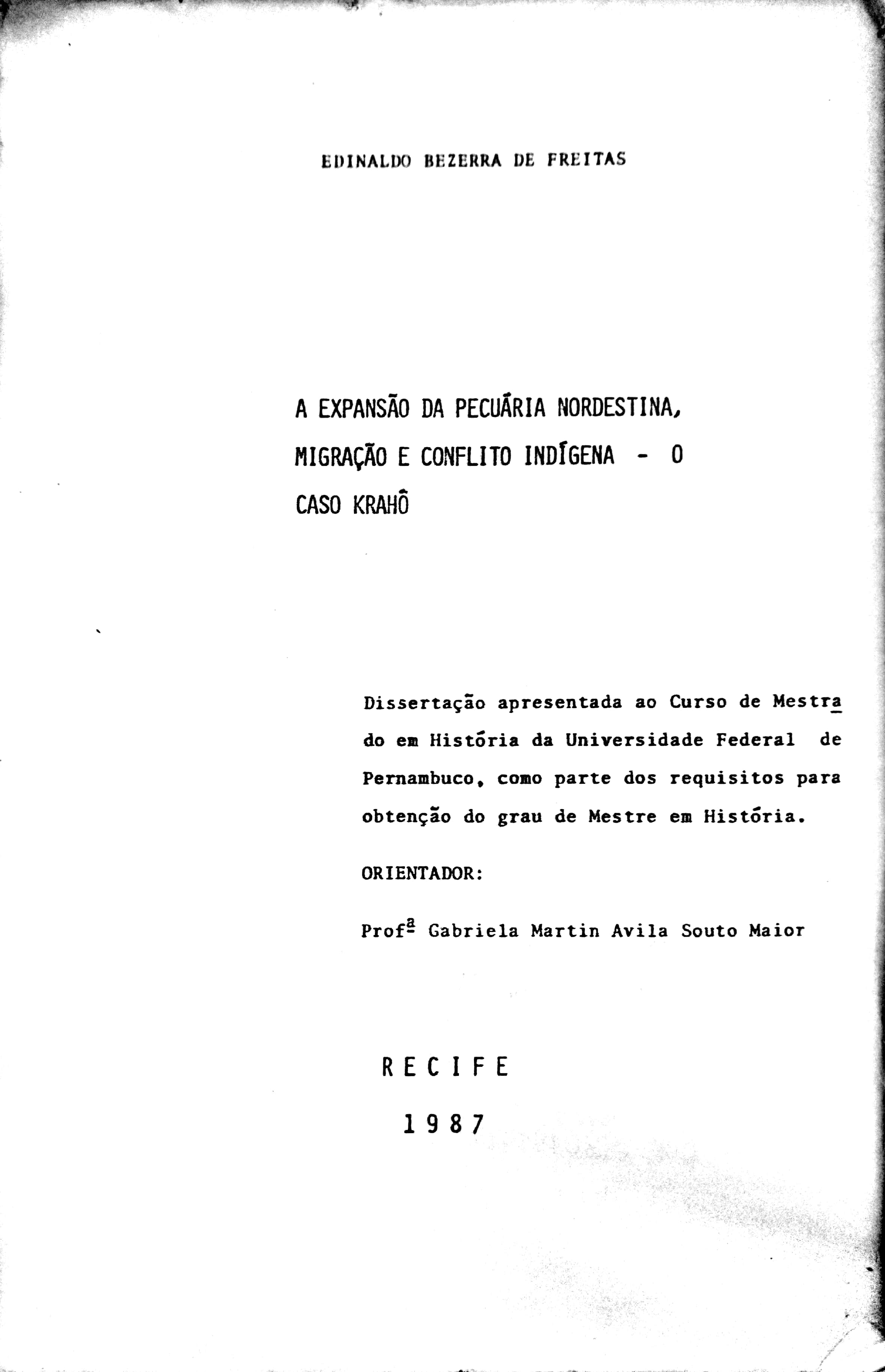 A Expansão da Pecuária Nordestina, Migração e Conflito Indígena - O Caso Krahô