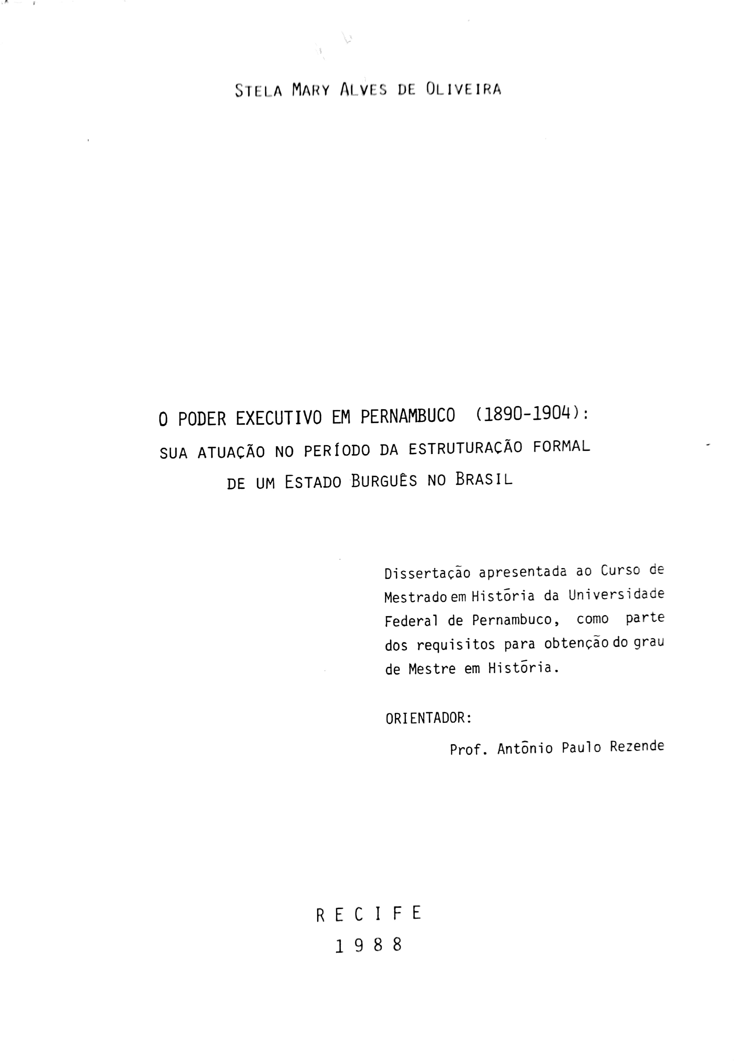 O Poder Executivo em Pernambuco (1890-1904): Sua Atuação no Período da Estruturação Formal de um Estado Burguês no Brasil