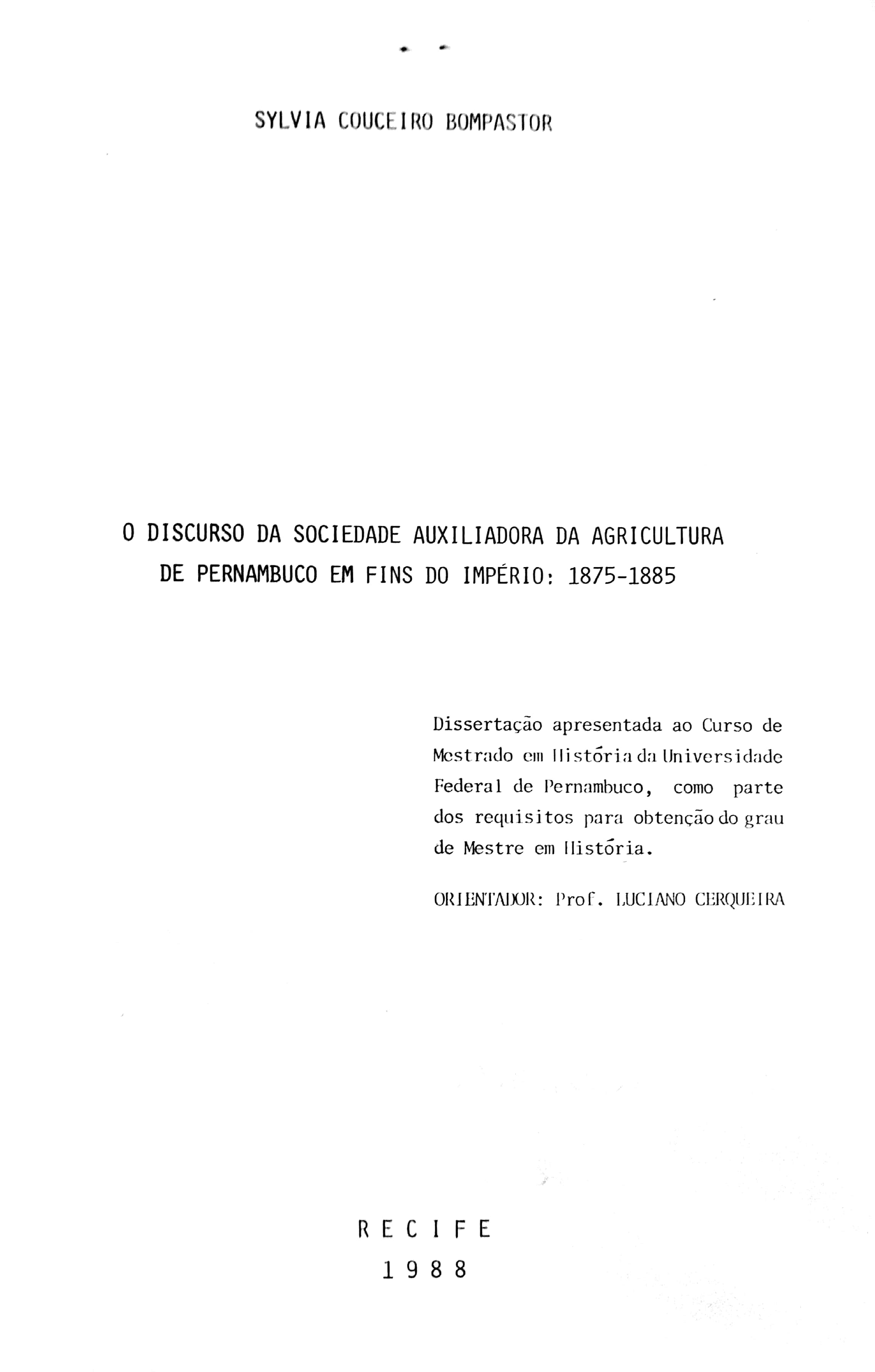 O Discurso da Sociedade Auxiliadora da Agricultura de Pernambuco em Fins do Império: 1875-1885
