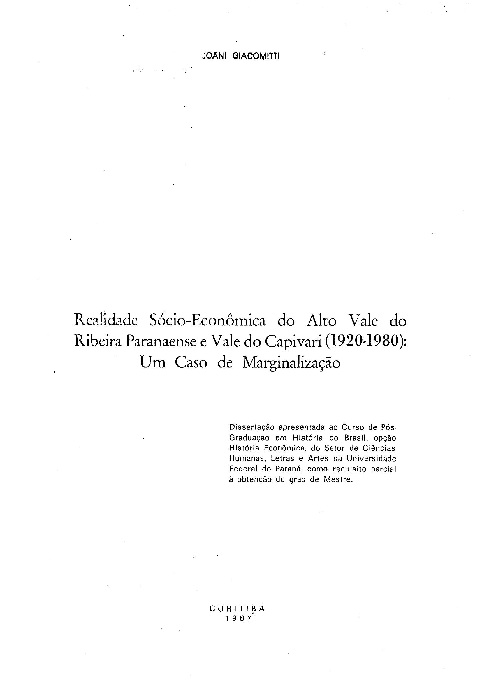 Realidade Sócio-Econômica do Alto Vale do Ribeira Paranaense e Vale do Capivari (1920-1980): Um Caso de Marginalização