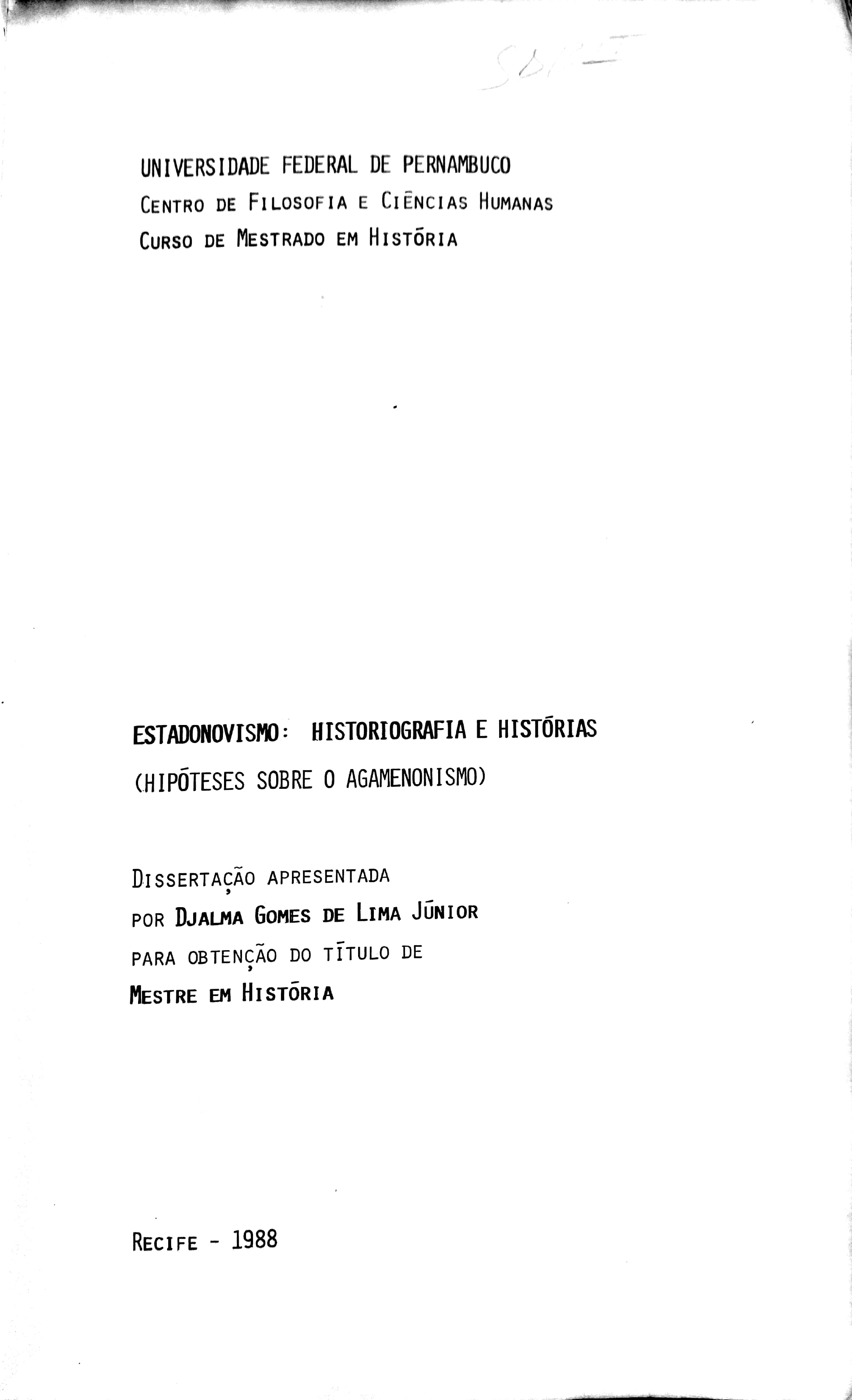 Estadonovismo: Historiografia e Histórias (Hipóteses sobre o Agamenonismo)