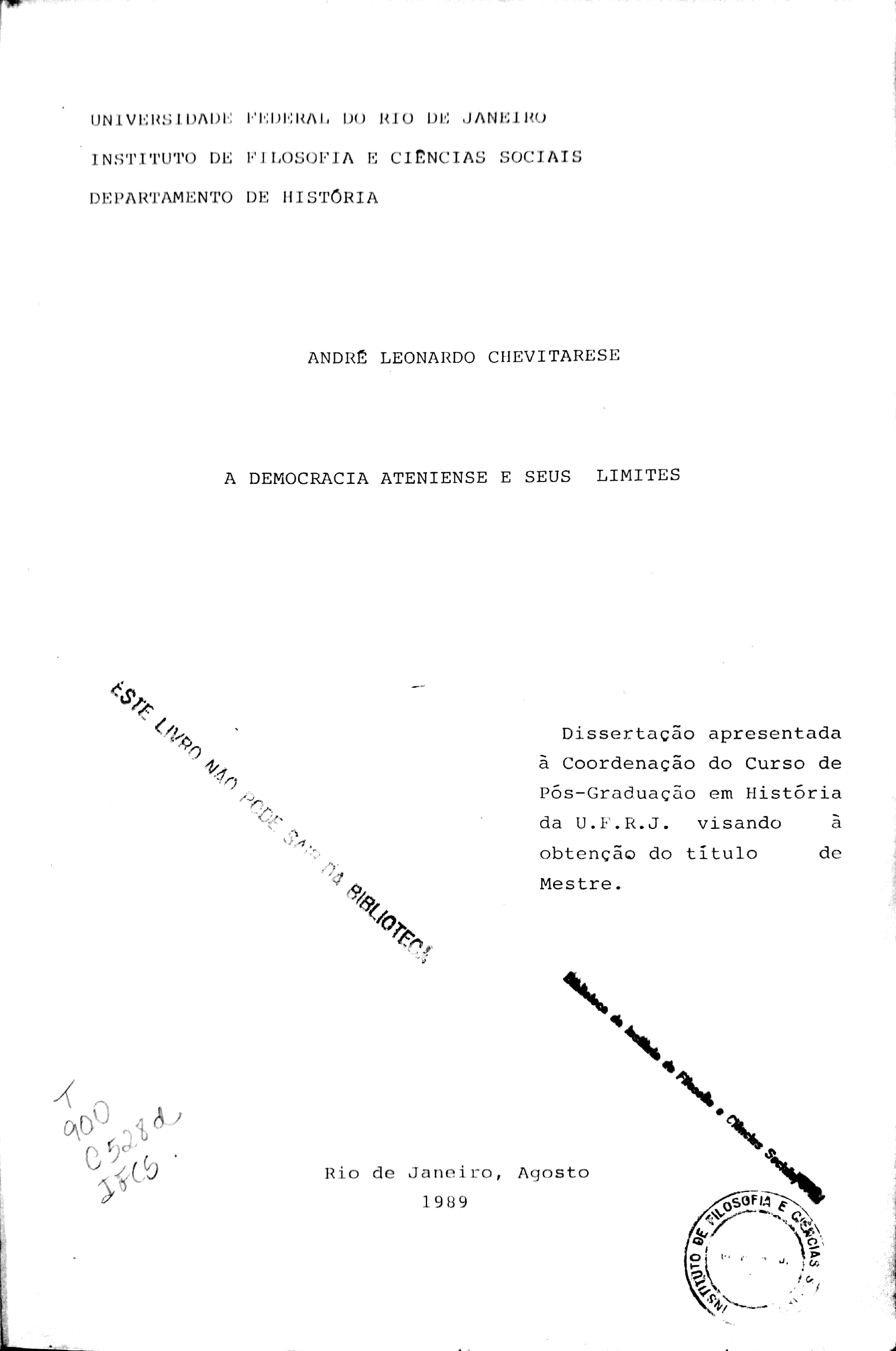Partindo dos antecedentes que levaram a cristalização da forma de governo democrática, analisamos o seu desenvolvimento histórico até o final do quinto século quando Atenas perdeu do Peloponeso. A economia urbana e rural da polis ateniense foi alvo dos nossos estudos, onde analisamos a ideologia do lazer, o Império Ateniense, o papel da cerâmica, as minas do Laurion e as suas relações com a sociedade como um todo. Por último, fizemos um estudo sobre os entraves que a forma de governo democrático ofereceu ao corpo cívico, analisando a questão do tempo, as relações entre cidadãos contrapondo-se às relações entre Estado Políade e cidadão, e os entraves ao acesso às altas funções militares. |