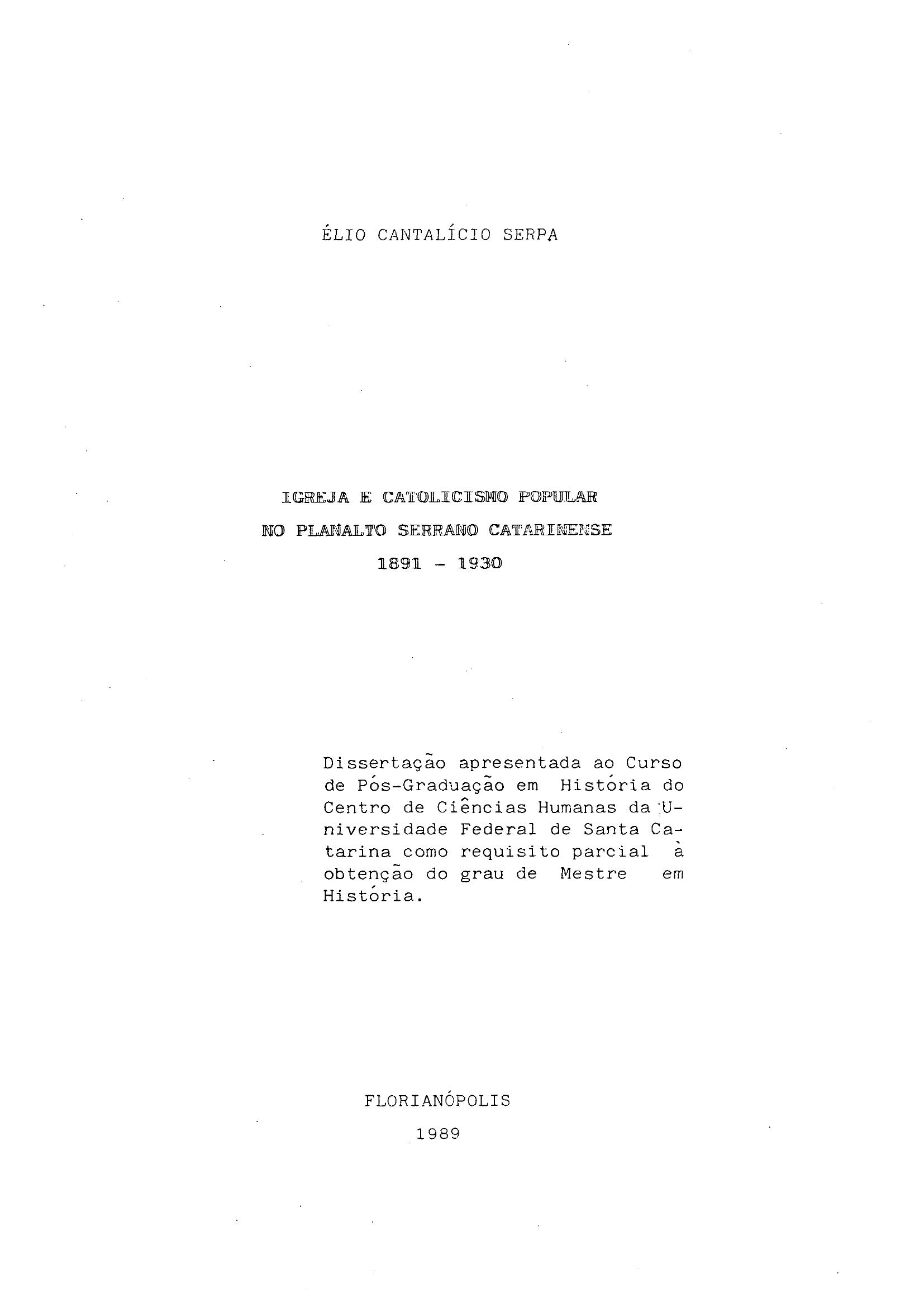 Neste trabalho, buscou-se resgatar a atuação da Igreja Católica em Santa Catarina, no contexto de romanização que visava o seu alinhamento à Santa Sé e a construção da sua identidade institucional, através da montagem de toda uma estrutura organizacional e devocional, da importação de ordens e congregações religiosas estrangeiras masculinas e femininas, numa relação muito íntima com as elites dirigentes estaduais e locais. Mostra-se, ainda, que esse alinhamento da Igreja Católica à Santa Sé deu-se em meio a uma série de reuniões do Episcopado, culminando com a elaboração de documentos que não refletiam a realidade concreta brasileira, mas que traziam toda uma postura fortemente europeizada. Para contrapor todo o conteúdo exógeno trazido pelo catolicismo ultramontano, resgatou-se aquilo que é muito típico na região do Planalto Serrano Catarinense: a devoção a santos, promessas, benzeduras, monges, festas e procissões profanas e a participação ativa do leigo nos assuntos religiosos em detrimento do padre que são características marcantes do catolicismo popular. Acima de tudo, contrapõe-se ao catolicismo ultramontano, trazido pela igreja romanizada com o catolicismo popular existente na região. Procurou-se mostrar a relação da Igreja Católica, representada em Lages pela Ordem Franciscana, com as elites dirigentes locais, como forma de criar espaços para penetrar em todas as esferas da sociedade, legitimando-as no poder e combatendo manifestações religiosas populares. |