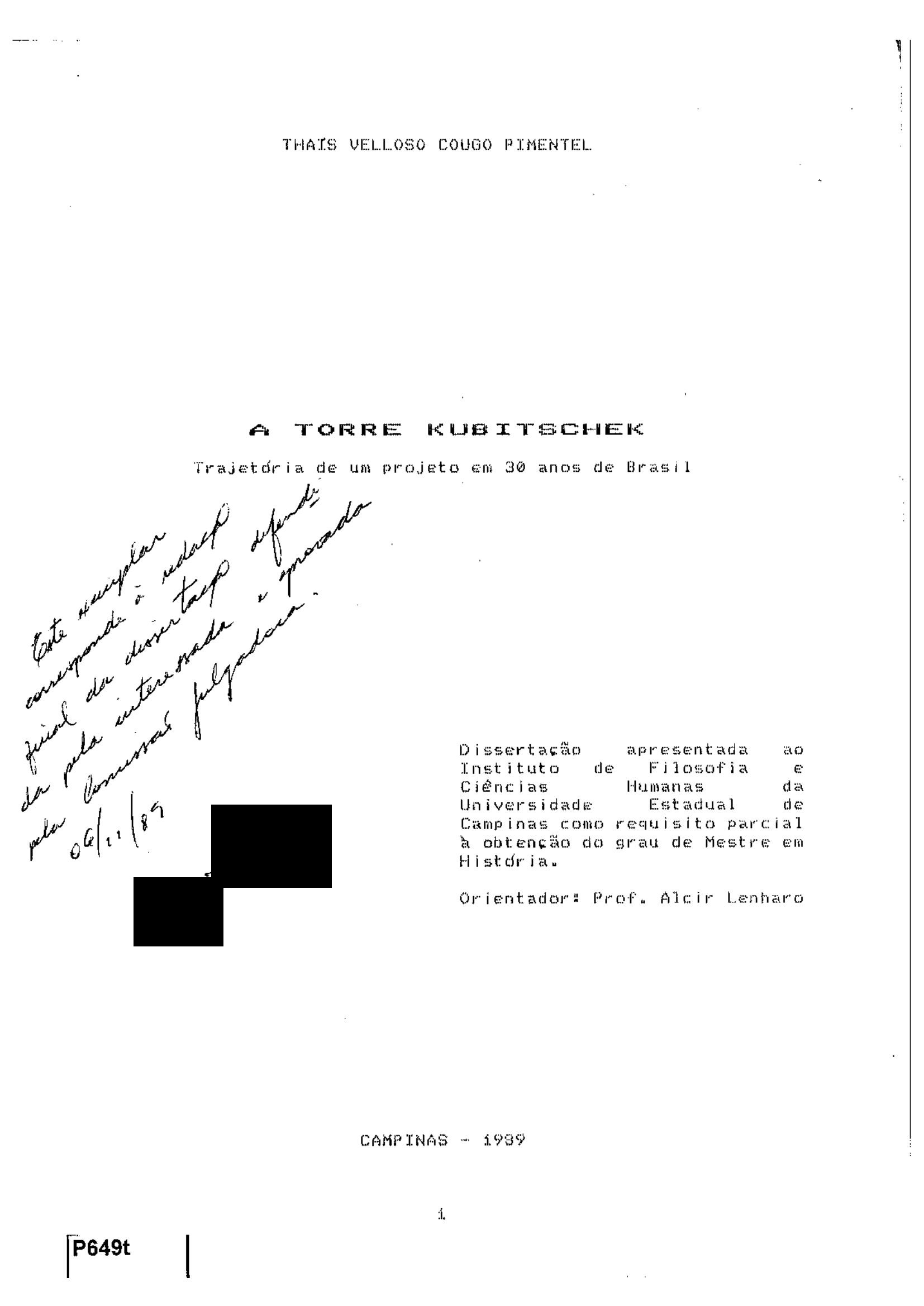 Thaís Velloso Cougo Pimentel (Orientador: Alcir Lenharo)