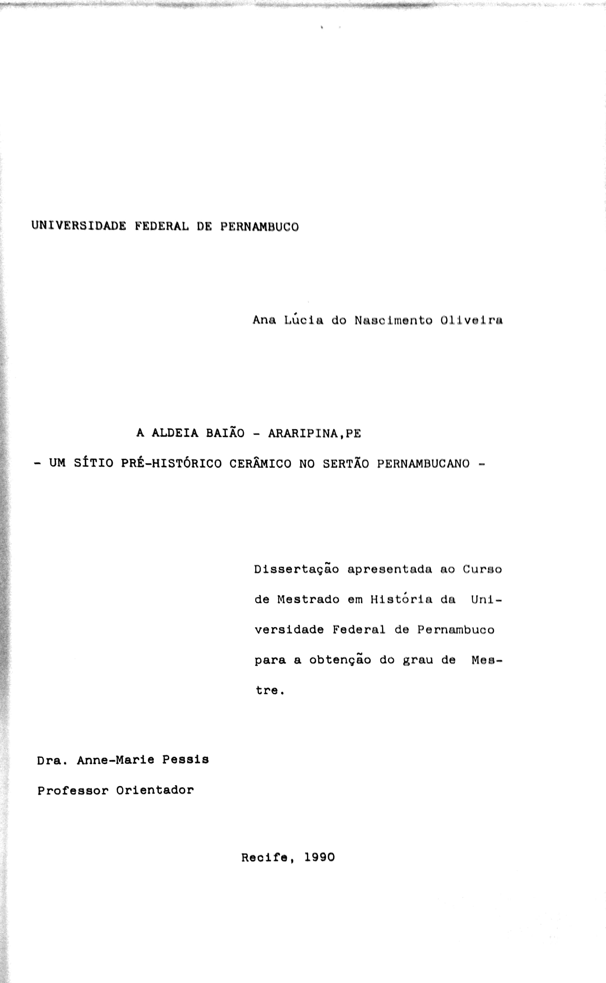 A Aldeia Baião - Araipina, PE: Um Sítio Pré-Histórico Cerâmico no Sertão Pernambucano