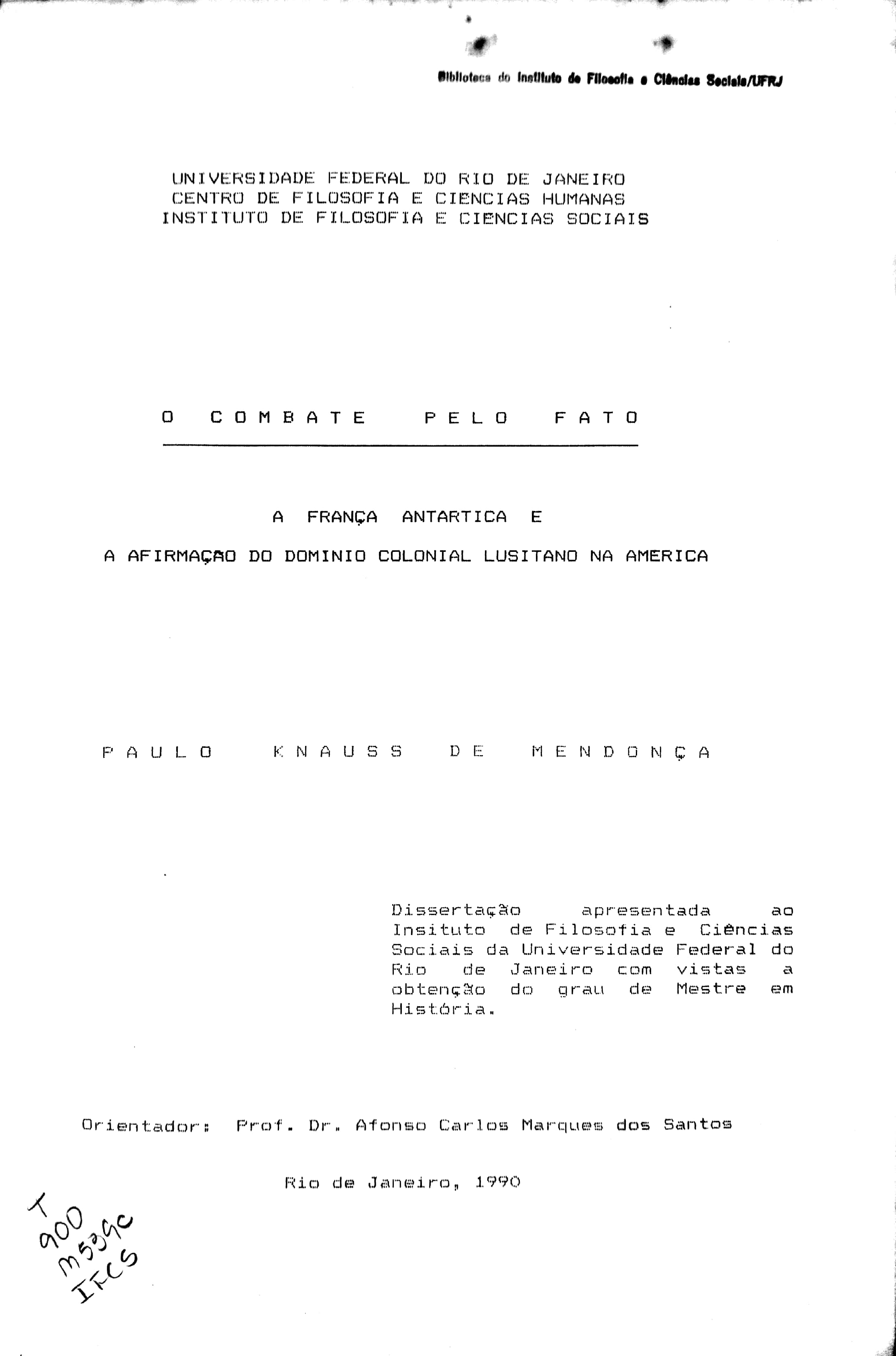 A dissertação tem como objeto a problemática da fixação da presença europeia na América Portuguesa. Levou-se a cabo um estudo de caso, baseado no episódio da França Antártica, ou seja, a tentativa de ocupação francesa na baía de Guanabara em meados do século XVI. Empreendeu-se a crítica do objeto, a partir da análise historiográfica, em torno dos estudos fundadores do tema e de sua associação com os estudos posteriores que permaneceram petrificados e aprisionados, segundo a mesma perspectiva de abordagem e sem inovações, a não ser a demarcação da rubrica das invasões ou da presença estrangeira. Em seu desdobramento procurou-se apresentar a inserção dos acontecimentos no quadro das disputas pela liberalização dos mares no século XVI, demonstrando como a empresa francesa se sustentava na prática do escambo, conformando-se em feitoria. De resto, indica-se a articulação da reação lusitana, após a derrocada dos franceses em 1560 com o desenvolvimento de movimentos guerreiros contra as tribos locais, definindo a afirmação do domínio lusitano na região com a fundação definitiva da cidade de São Sebastião do Rio de Janeiro. Por fim, procurou-se caracterizar o processo conquistador na América Portuguesa como produto da ação estatal metropolitana. |