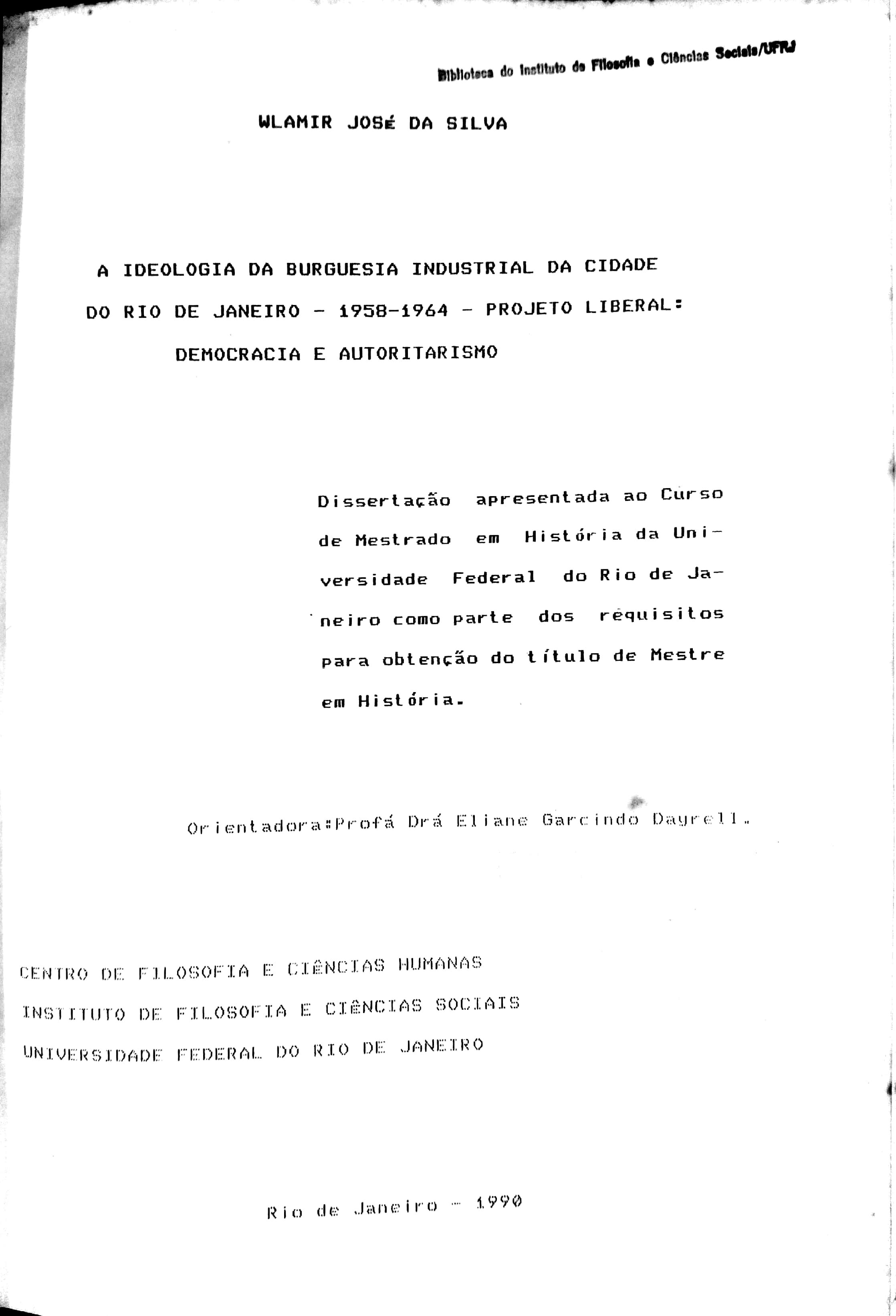 O trabalho analisa a ideologia da burguesia industrial da cidade do Rio de Janeiro, antigo Distrito Federal e Estado da Guanabara, entre 1958 e 1964. Neste período ocorreram reformulações ideológicas, culminando no desdobramento do projeto político desta fração de classe de democrático em autoritário. As variações ideológicas, que mobilizam politicamente a burguesia industrial carioca, partiram de um projeto liberal articulado com o anticomunismo. Reagindo às mudanças conjunturais da sociedade brasileira, baseados numa concepção imediata da relação entre democracia e propriedade, os industriais cariocas não admitiram a formação de um suposto projeto contrário ao deles. Desta forma, a burguesia industrial carioca reformulou sua ideologia e redirecionou seu projeto político no sentido do autoritarismo. |