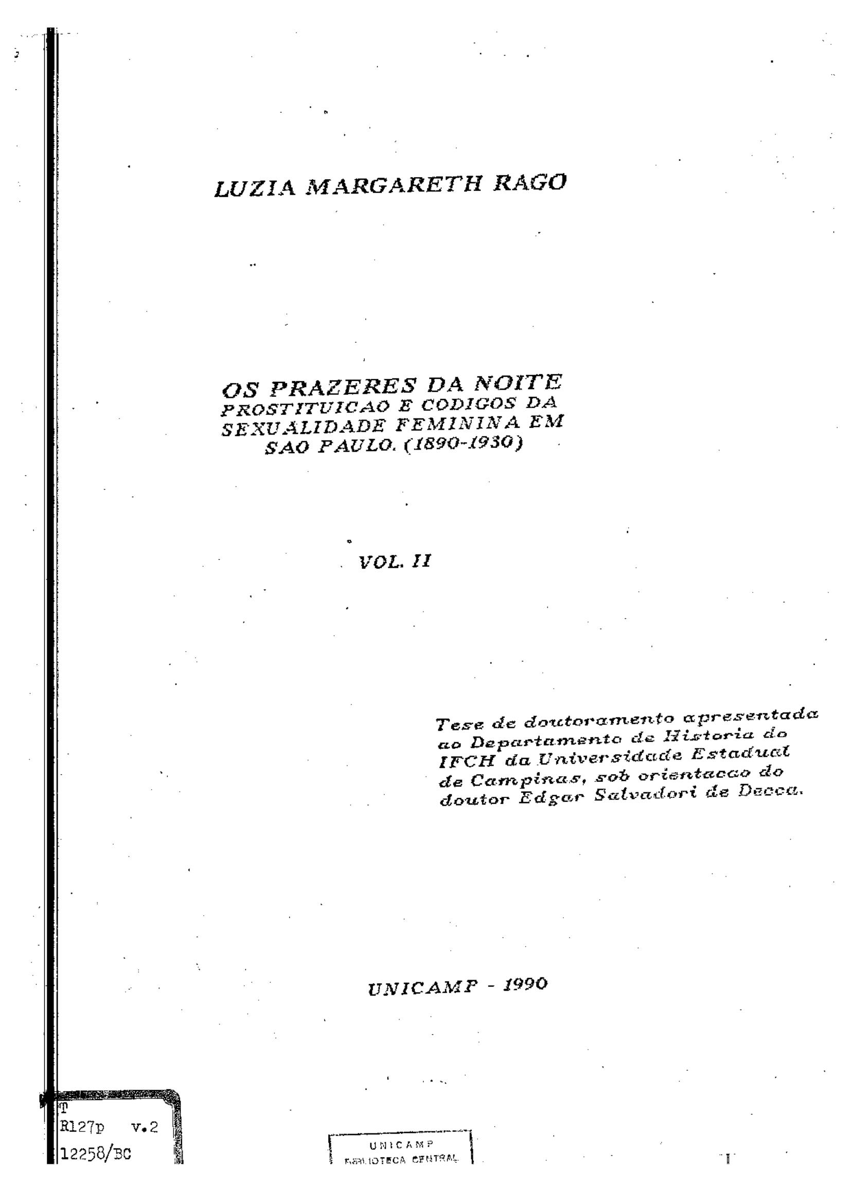 Luzia Margareth Rago (Orientador: Edgar Salvadori de Decca)