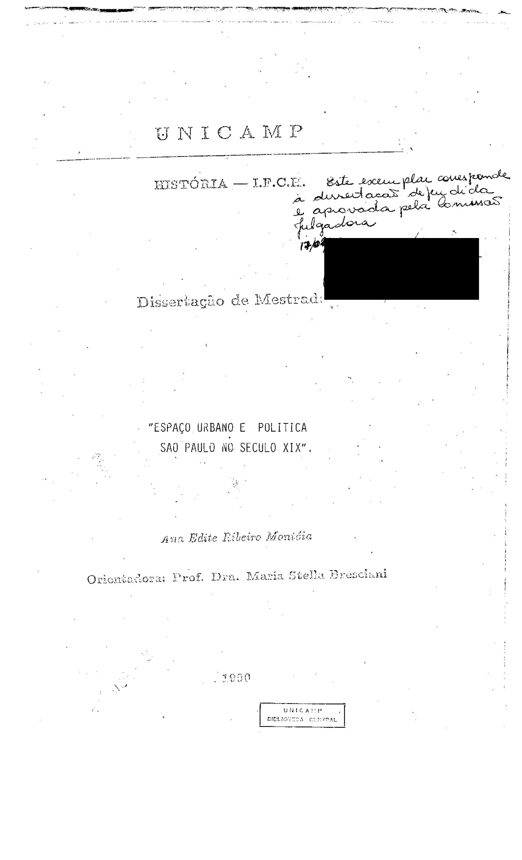 Ana Edite Ribeiro Montóia (Orientador: Maria Stella Martins Bresciani)
