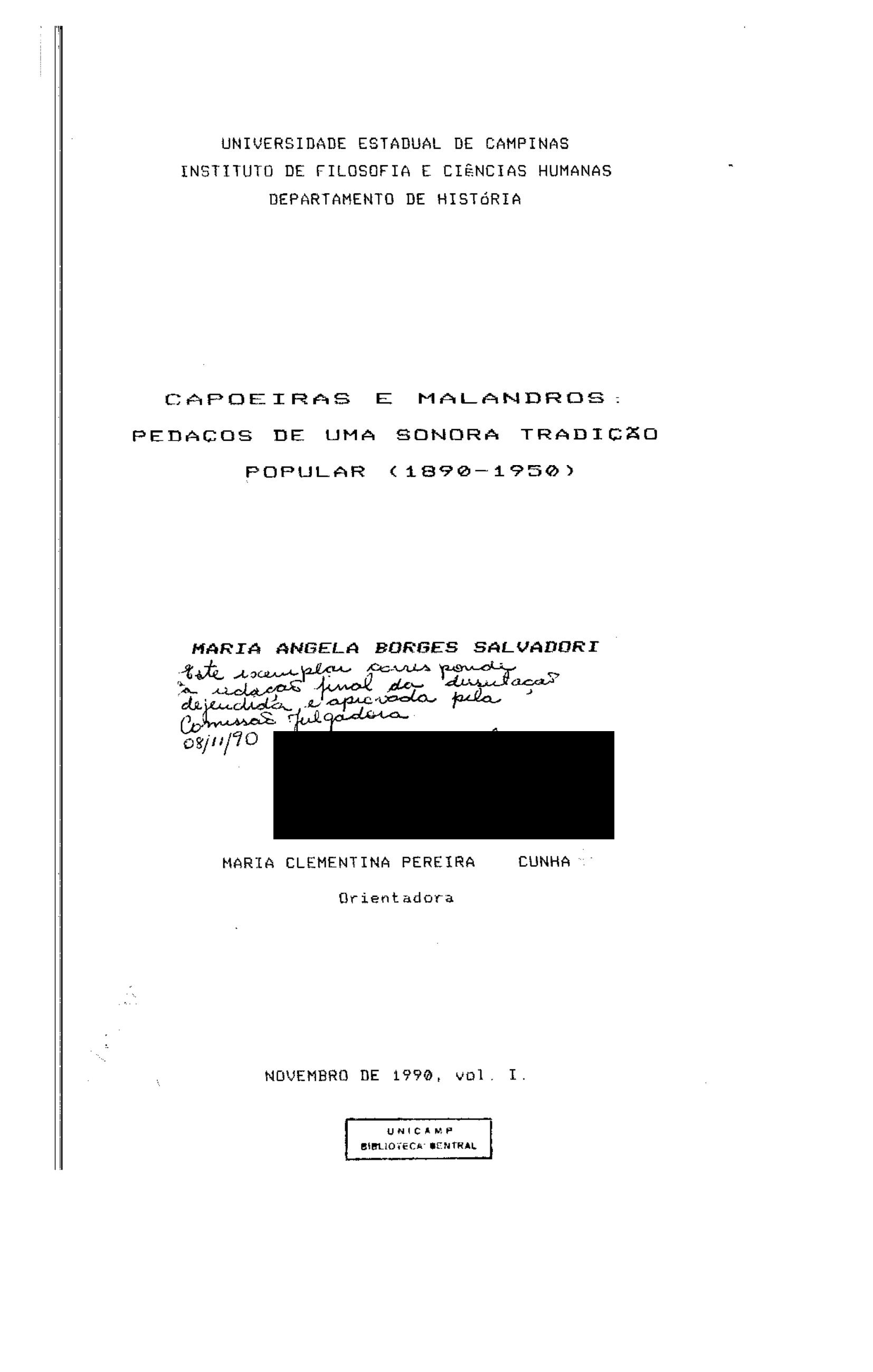 Esta pesquisa procura recuperar as experiências urbanas de capoeiras e malandros na cidade do Rio de Janeiro, após a extinção oficial do regime de trabalho escravo. Estampados entre 1890 e 1950 como sinônimos da violência urbana, eles mantiveram uma tradição de luta pela liberdade aprendida desde os tempos da escravidão, procurando preservar uma margem de autonomia e deliberação sobre suas próprias vidas. Envolvidos por um contexto de valorização moral do trabalho e de exaltação da figura do trabalhador, foram rotulados como sinônimos de vadiagem e violência urbana. Ao longo do texto, pretendi, exatamente, mostrar que aquilo que as falas disciplinares da polícia, da grande imprensa e de intelectuais ligados ao Estado ou a suas propostas percebiam como desordem e ameaça social era, quando analisado por um ângulo mais interno, uma prática de vida onde a liberdade pretendia ser preservada. É claro que não coloco capoeiras e malandros como personagens iguais, mas procuro salientar que entre eles é possível alinhavar uma tradição. Assim, reaparecem aqui várias questões trabalhadas na historiografia brasileira mais recente, tais como as visões de liberdade alicerçadas pelos negros, os projetos disciplinares de controle da população pobre da cidade e a resistência oferecida pelos grupos populares a estes mecanismos. A música popular brasileira é, por assim dizer, o eixo documental deste trabalho, que se utiliza, ainda, de fontes literárias, jornalísticas, policiais, biográficas e de memória. |