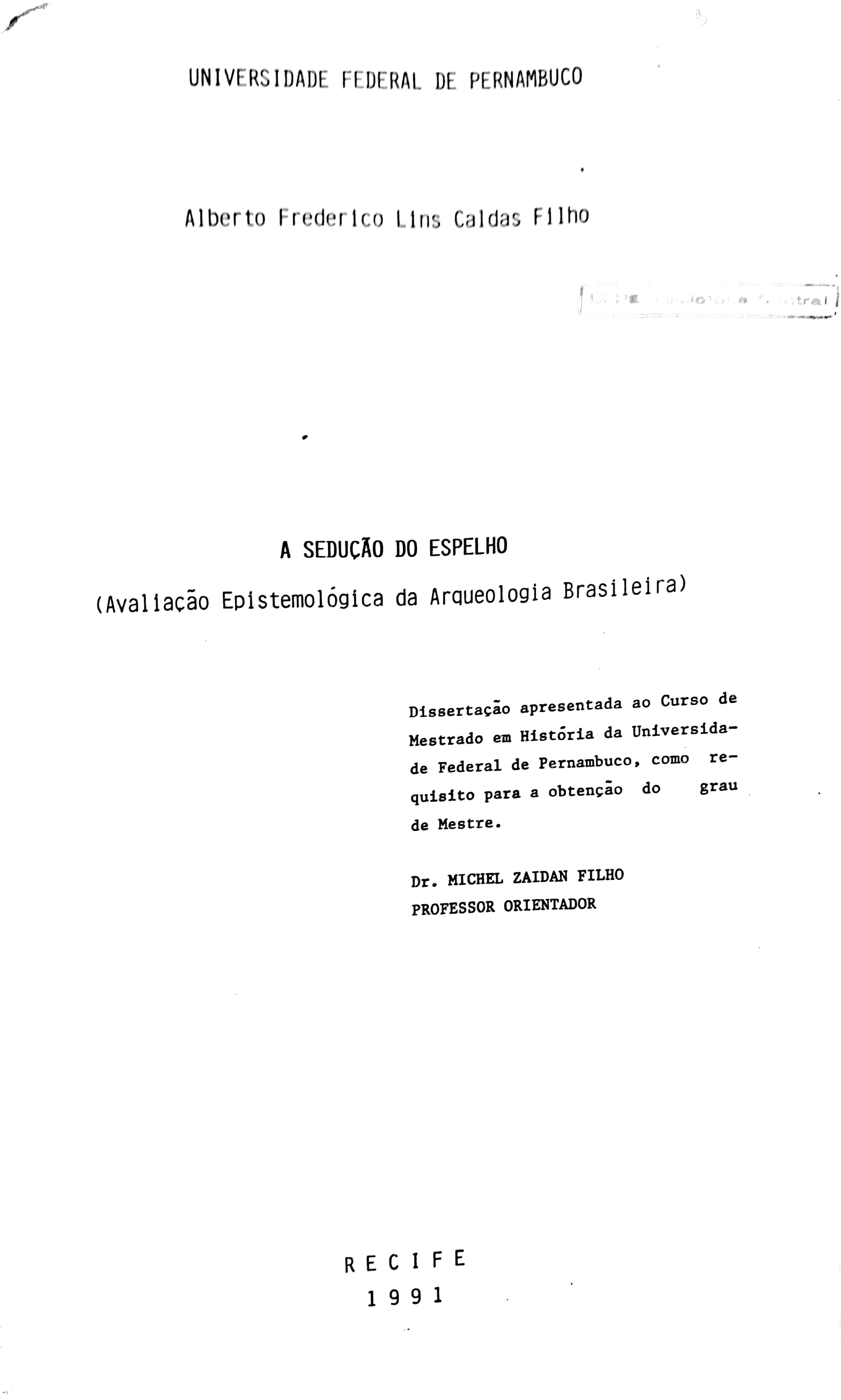 Alberto Frederico Lins Caldas Filho (Orientador: Michel Zaidan Filho)