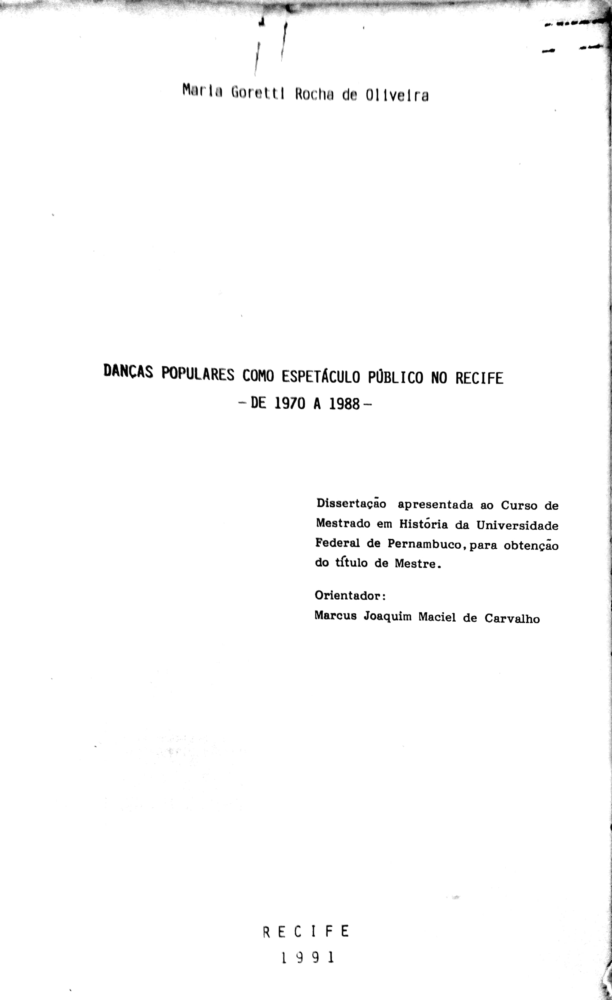 Danças Populares como Espetáculo Público no Recife - De 1970 a 1988