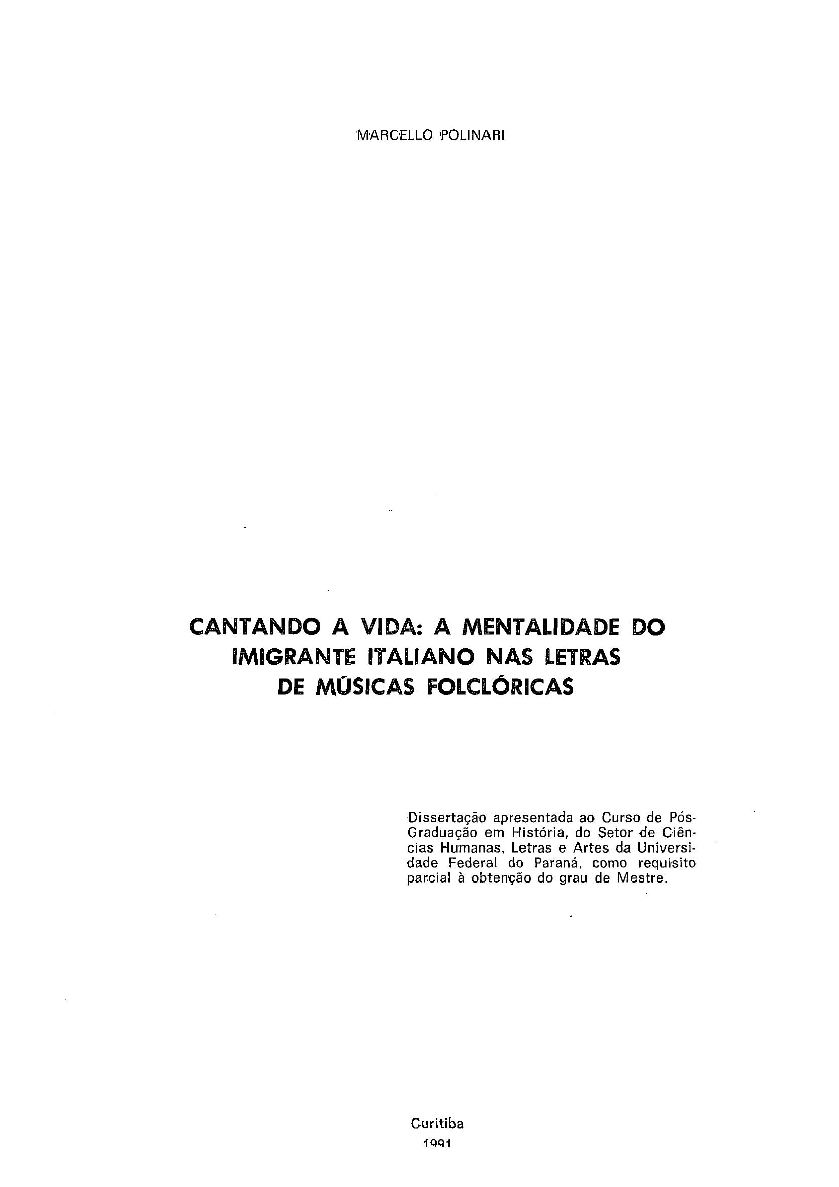 Cantando a Vida: A Mentalidade do Imigrante Italiano nas Letras de Músicas Folclóricas