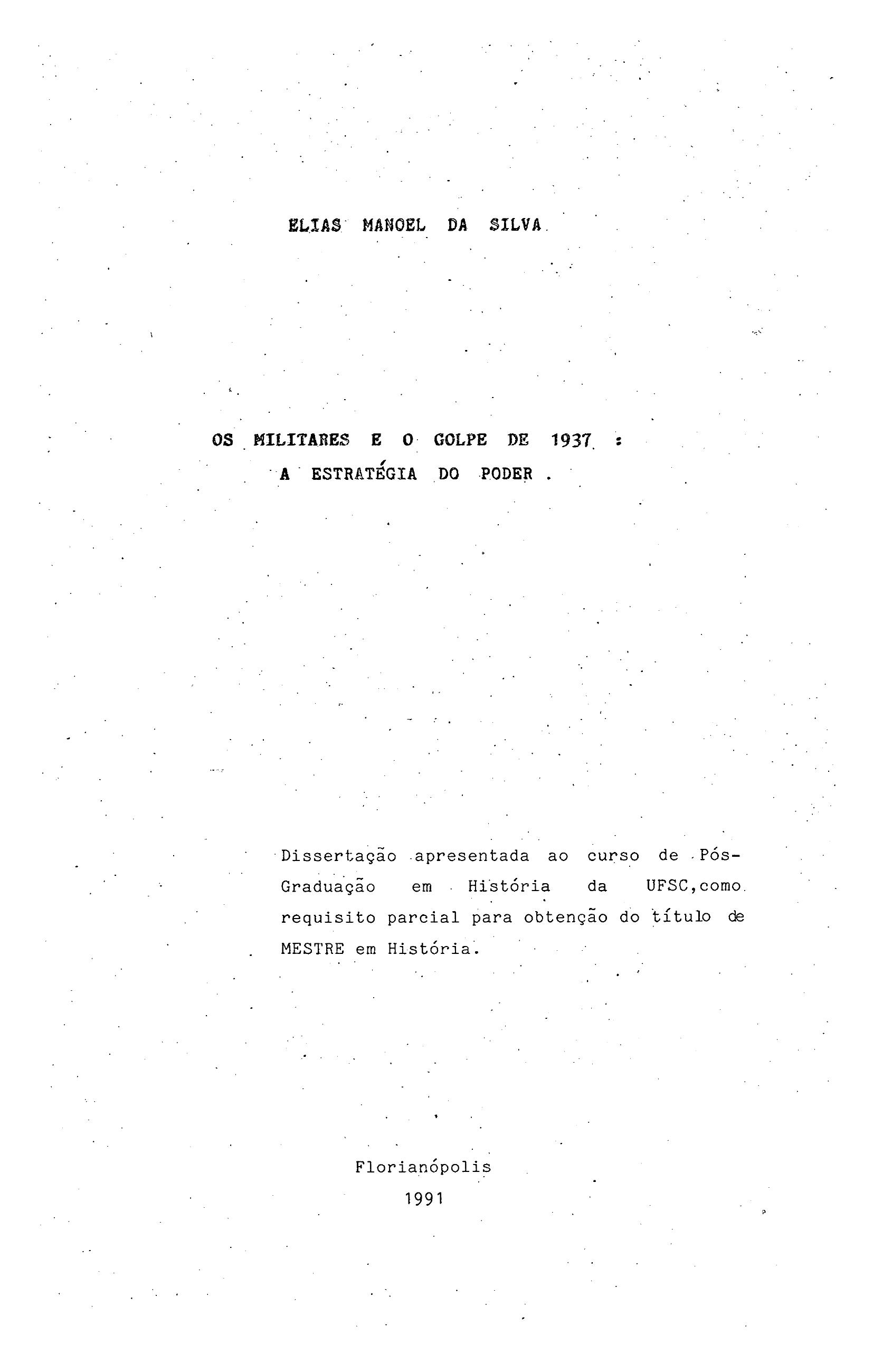 Esta Dissertação de Mestrado tem por objetivo apresentar uma reinterpretação histórica do processo político da recente história contemporânea brasileira, que culminou com a instalação do regime autoritário do Estado Novo em 1937. Tendo o Exército como objeto central de análise, no período compreendido entre o golpe da República e o golpe do Estado Novo, este estudo visou uma abordagem estrutural desta instituição militar para defender a tese de que o regime imposto ao Brasil em 1937, foi de responsabilidade das cúpulas militares apoiadas por Getúlio Vargas, em contraposição às teses que afirmam o oposto. Enfatizando as mudanças de comportamento nas instituições militares, principalmente no período pós-Constituição de 1934, buscou-se refletir o porquê da disposição do Exército em instalar um regime autoritário no país, sem exercer o poder diretamente, mas beneficiando-se diretamente do mesmo. O foco voltado para o Exército permite: compreender em que medida fatores internos e subjacentes às instituições militares, caracterizadas por clivagens e contradições desde o golpe da República, permitiu a criação de uma unidade militar com vistas ao golpe de 1937, onde estas se apresentam "hegemonicamente". |