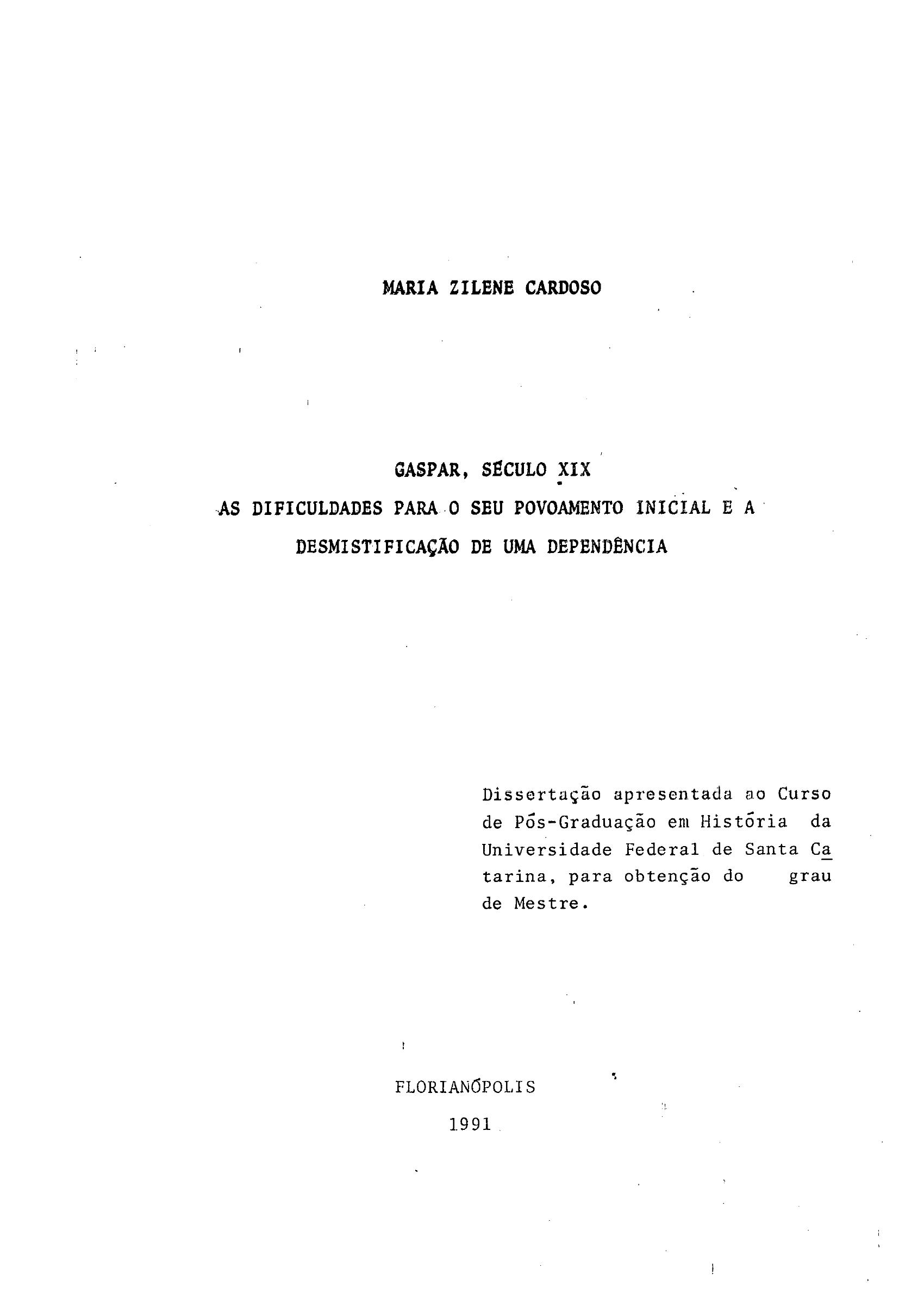 Este trabalho tem por objetivo justificar a importância, para a historiografia catarinense, de um estudo que tem o propósito de tirar do anonimato toda uma estrutura organizacional que tem existido antes da fundação da Colônia Blumenau, a qual Gaspar esteve sempre atrelada. Além disso, tem sido mostrado que a dependencia da Freguesia, depois Município de Gaspar com a Colônia Blumenau, decorreu de uma série de conflitos entre o fundador da Colônia, como também entre os colonizadores que já estavam vivendo por muito tempo em Gaspar e o citado fundador. Com o propósito de analisar todo o heroísmo consagrado à pessoa de Hermann Bruno Otto Blumenau, foi resgatada uma vasta documentação que não tinha sido usada até então pela historiografia catarinense, onde aparece sua interferência nas mais importantes decisões para o impedimento do progresso de Gaspar. Tentou-se mostrar a relação do diretor da Colônia Protestante de Blumenau com o vigário da Freguesia de São Pedro Apóstolo, uma vez que o diretor da mencionada Colônia não aceitava sua submissão em detrimento da elevação da categoria de freguesia, num espaço do qual ele se considerava dono. |