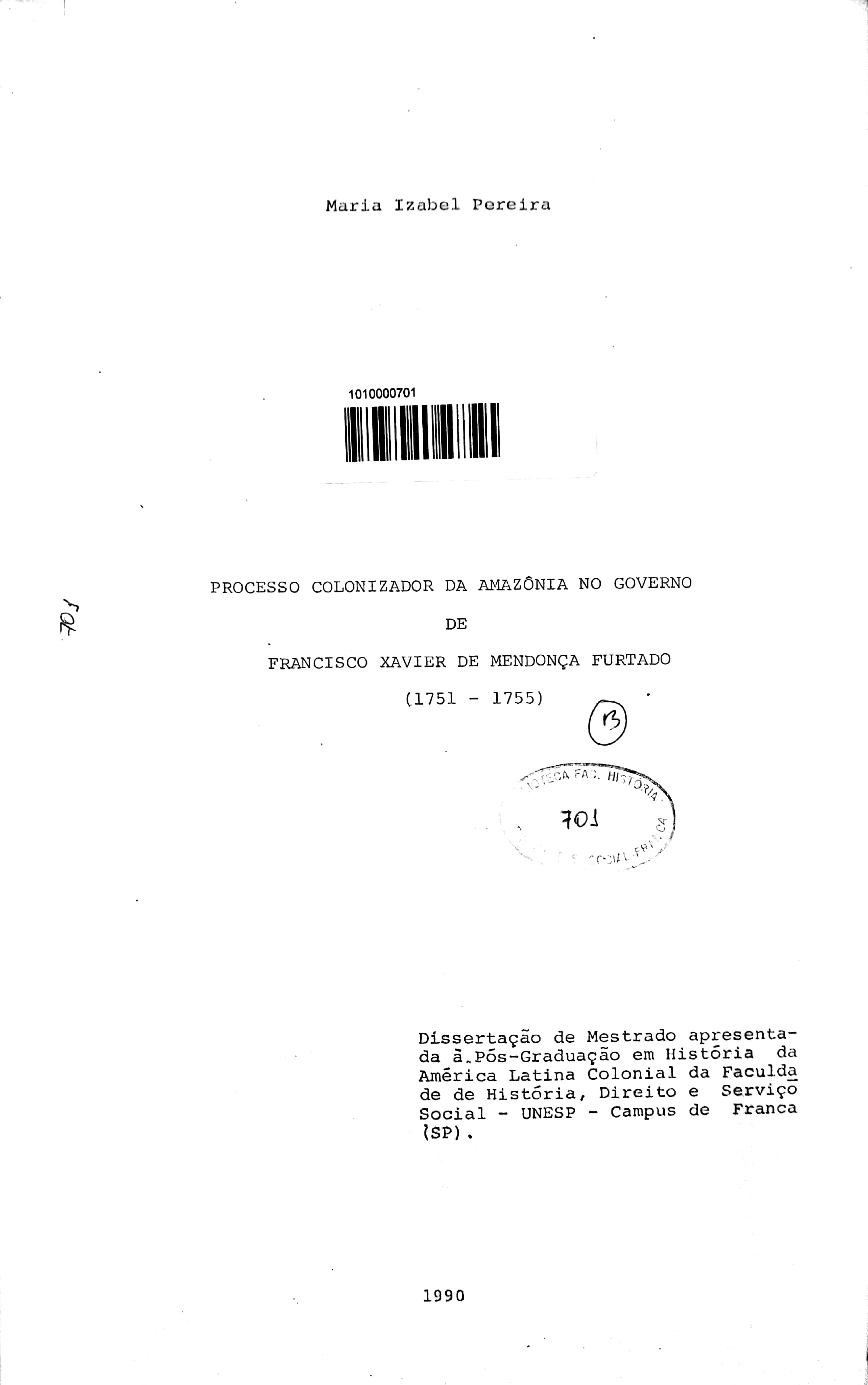 Processo Colonizador da Amazônia no Governo de Francisco Xavier de Mendonça Furtado (1751-1755)