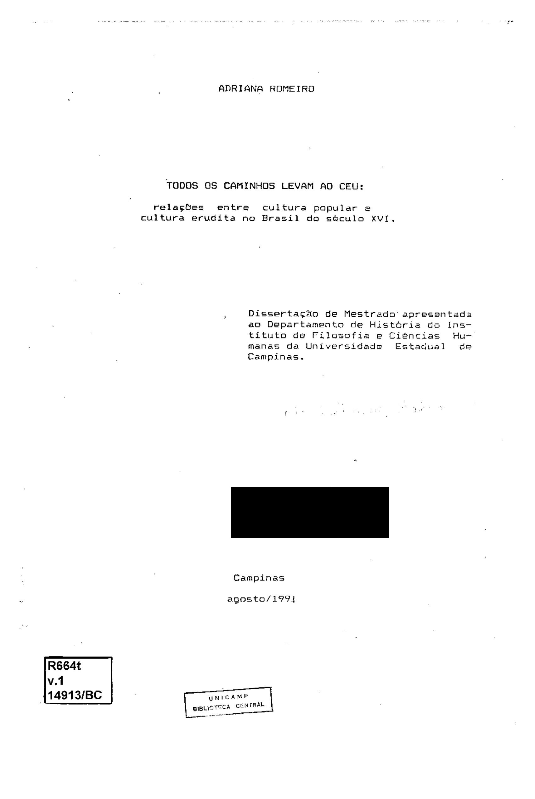 Todos os Caminhos Levam ao Céu: Relações entre Cultura Popular e Cultura Erudita no Brasil do Século XVI