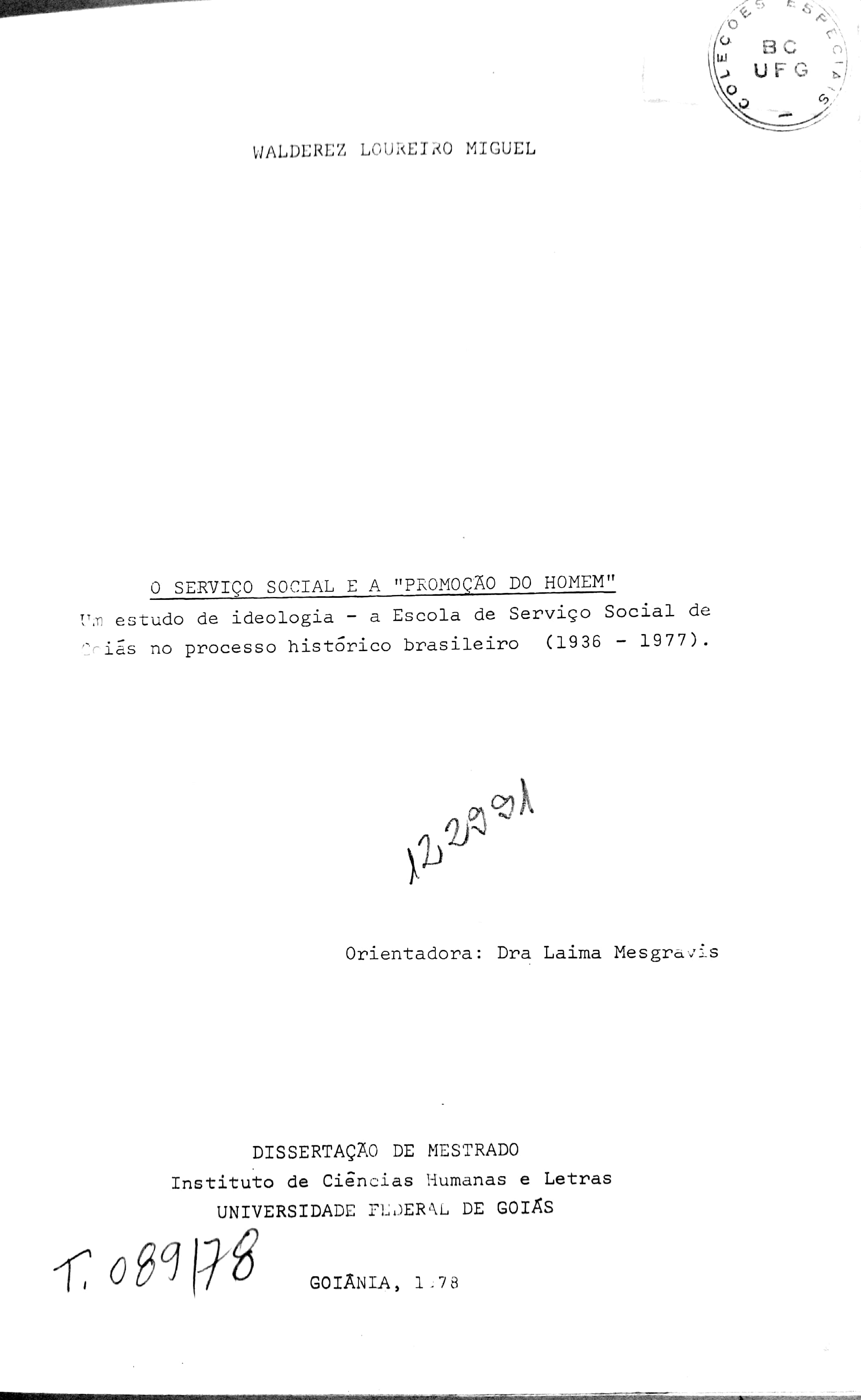 O trabalho se propõe a conhecer a ideologia do Serviço Social através de uma Escola de Serviço Social. Partindo da premissa de que a ênfase de uma Escola de Serviço Social face à formação acadêmica do assistente social - seu profissional - está na "promoção do homem"esta pesquisa questiona o significado desta representação. Que homem é promovido? A "serviço"de quem está uma Escola de Serviço Social? A hipótese de trabalho assim é levantada: a Escola de Serviço Social não só responde pela reprodução das relações de dominação, mas também pela libertação do oprimido. Na primeira parte busca-se estabelecer o nexo existente entre a sociedade política e a sociedade civil na história brasileira. Procura-se na segunda parte captar como um sistema de idéias se atualiza, desta feita pela luta das classes patronais e da Igreja, na institucionalização da Escola de Serviço Social de Goiás - objeto de estudo desta Monografia. Já na terceira parte retorna-se a análise da estrutura ideológica nas articulações entre sociedade civil e política, tratadas até então, e procura-se daí para frente, estudar especificamente a escola de Serviço Social de Goiás como instituição simbólica, na sua dupla dimensão de reprodutora da cultura dominante e como pedagogia na libertação do oprimido. |