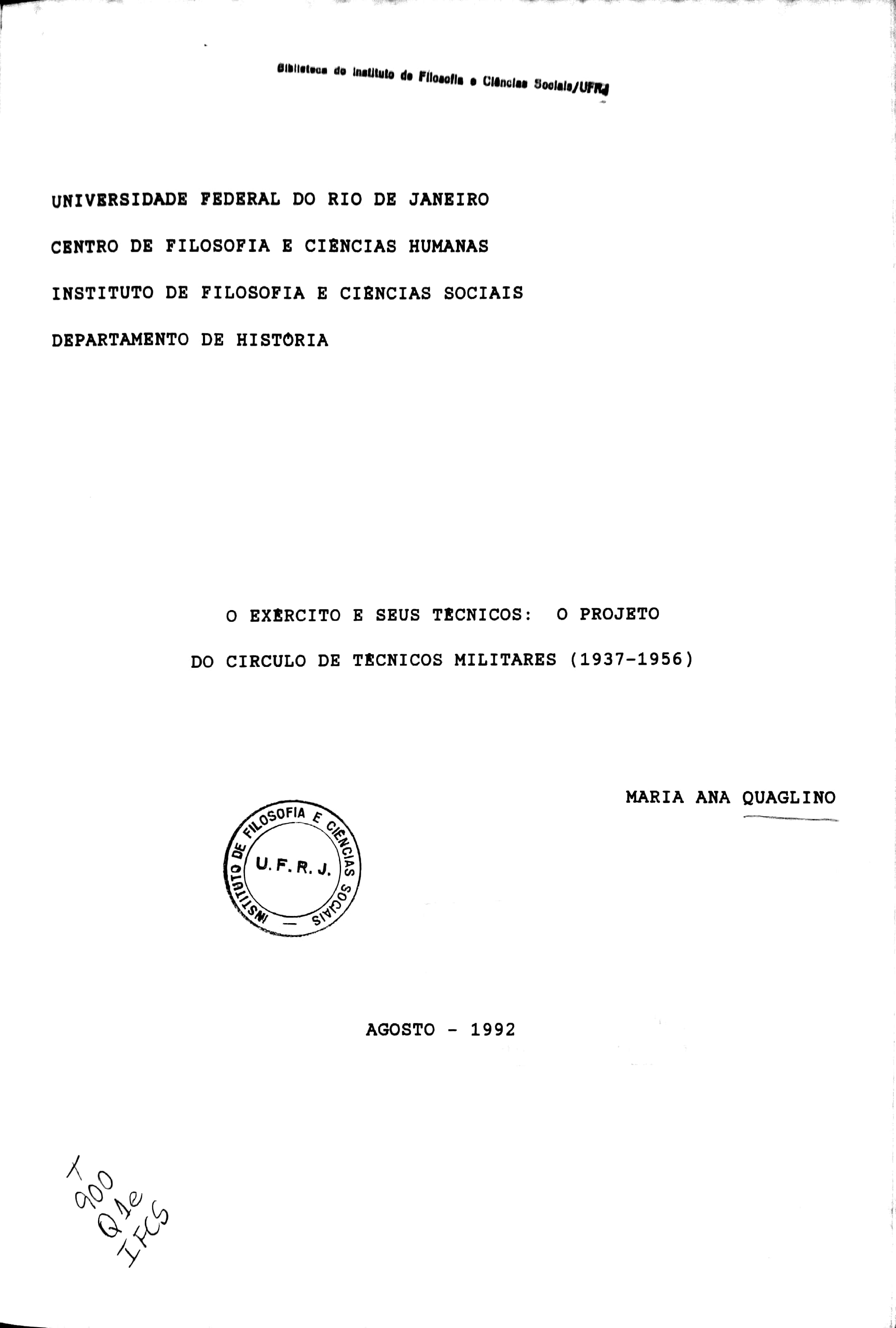 O tema geral deste trabalho é a questão da identidade do Exército no Brasil. Esta tese examina a trajetória da carreira de técnico militar no Exército, desde sua gênese em 1938, com a reestruturação do ensino na Escola Técnica do Exercito, até a sua extinção, por ocasião da reforma geral da corporação, ocorrida em 1956. Analisando esta questão específica, pretendemos demonstrar como uma proposta alternativa de Exército, produzida por um grupo de engenheiros militares - liderados por Edmundo Macedo Soares e Organizados no Círculo de Técnicos Militares - pode conviver com o projeto hegemônico de corporação, formulados por Gois Monteiro no início dos anos 30. Para o desenvolvimento de nosso trabalho, utilizamos como principais fontes primárias o arquivo privado de Edmundo Macedo Soares e o Boletim do Círculo de Técnicos Militares. Documentação que nos possibilitou ver Edmundo Macedo Soares e outros técnicos do seu grupo, de uma forma distinta daquela que a historiografia geralmente os apresenta. De um modo geral, os estudos sobre Exército e as análises sobre participação de atores no processo decisório que conduziu à criação das chamadas indústrias de base, subestimam a relação destes técnicos com o Exército. |
