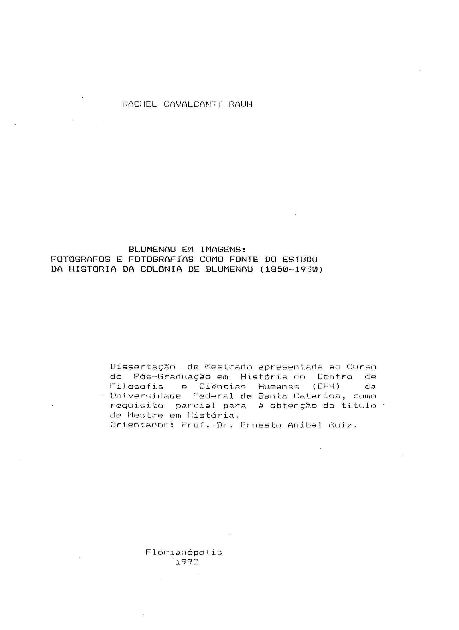 O objetivo deste trabalho é desenvolver uma metodologia para analisar as fontes fotográficas para a pesquisa histórica. A metodologia desenvolvida neste trabalho está fundamentada em três diferentes pontos. Primeiramente com as definições teóricas sobre fotografia apontadas por estudiosos da área. Em segundo lugar de sugestões para a classificação de documentos visuais de estudiosos como Boris Kossoy e Erwin Panofsky entre outros. Finalmente pelo tipo de informação encontrada e registrada nas fotografias localizadas no Arquivo Municipal José Ferreira da Silva na cidade de Blumenau - Santa Catarina. A metodologia desenvolvida neste trabalho foi usada para estudar a história dos habitantes de Blumenau. Diferentes aspectos da vida dos blumenauenses podem ser visualizadas nas fotografias e relatadas nos documentos escritos para propostas comparativas. A comparação entre os documentos visuais e escritos sobre os nativos da região de Blumenau mostra o cotidiano na Reserva Indígena Duque de Caxias assim como a deterioração da cultura indígena. Sobre a vida dos colonizadores e o processo de colonização, a comparação entre documentos visuais e escritos mostram diferentes aspectos e detalhes do processo de aculturação. Este trabalho pretende mostrar a importância dos documentos visuais na pesquisa histórica sugerindo novas fontes de dados para analisar e interpretar as experiências humanas no passado. |