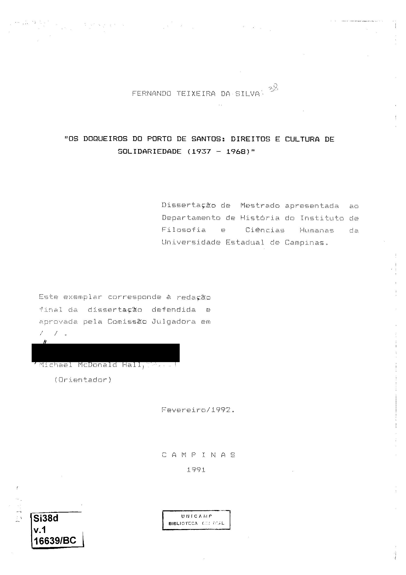 Fernando Teixeira da Silva (Orientador: Michael McDonald Hall)