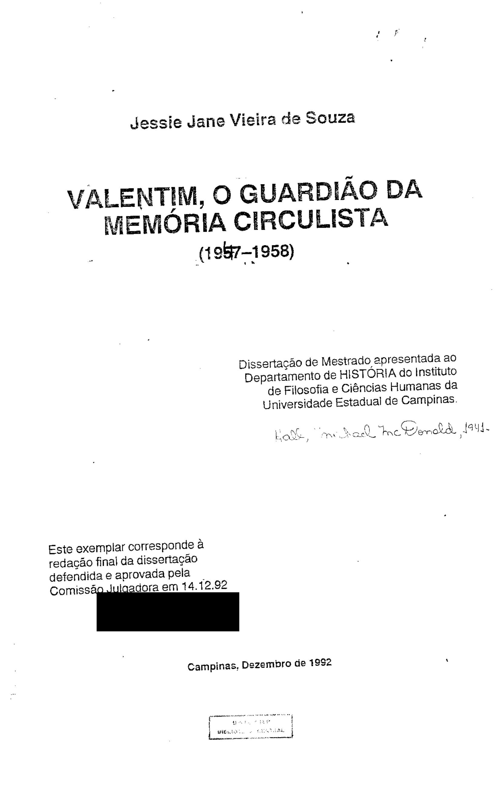 Jessie Jane Vieira de Souza (Orientador: Michael McDonald Hall)