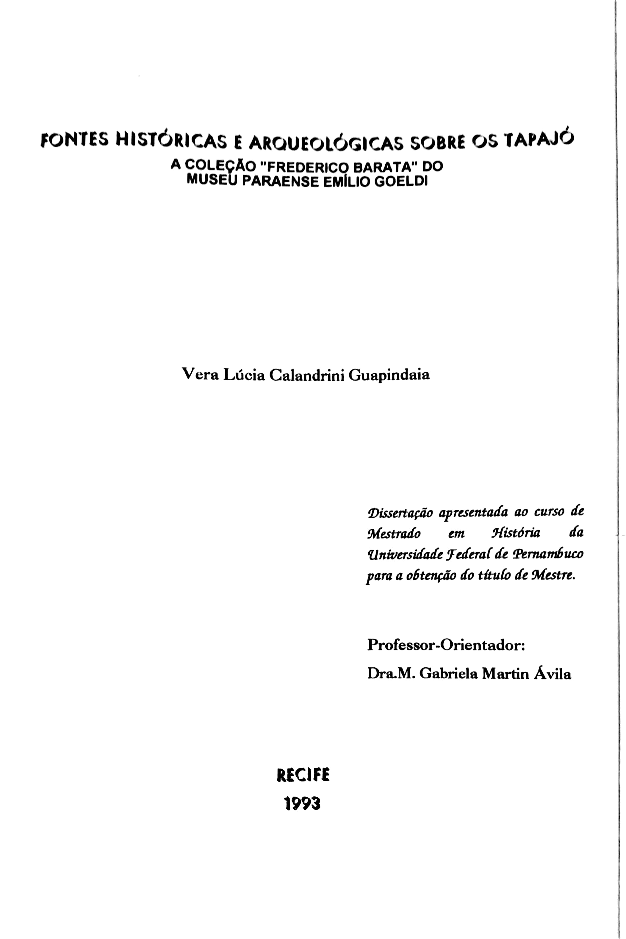 Fontes Históricas e Arqueológicas sobre os Tapajó. A Coleção "Frederico Barata" do Museu Paraense Emílio Goeldi