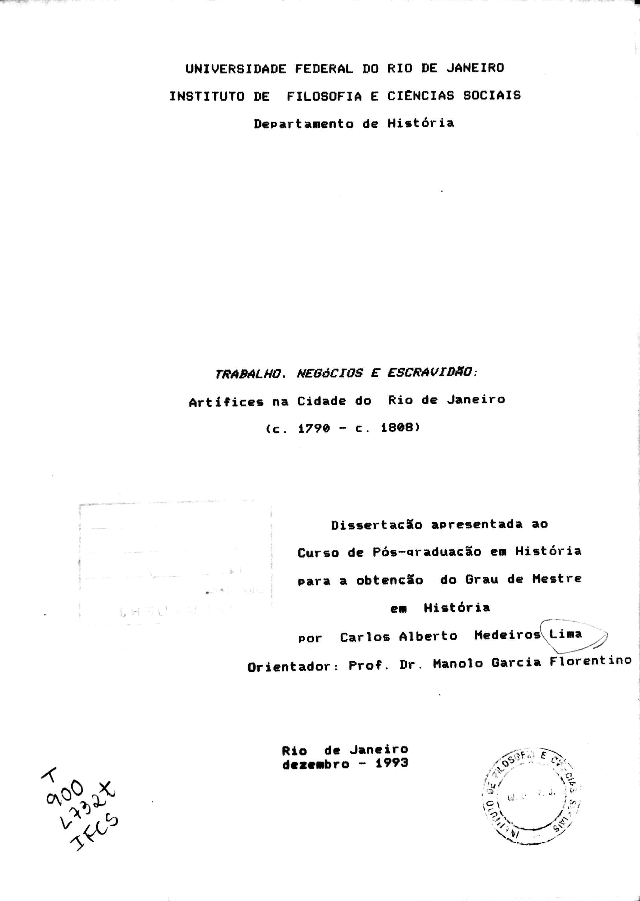 Este estudo analisa as condições de existência do artesanato na sociedade colonial na passagem do século XVIII para o XIX. Tomando como caso a cidade do Rio de Janeiro, usa como fontes básicas os registros dos exames corporativos, as licenças para oficinas dadas pela Câmara da cidade e inventários post-morten de artesãos. O artesanato era de natureza escravista e colonial, resultando em sua dependência frente ao capital mercantil, em um processo produtivo tosco, em limitadas possibilidades de acumulação e mobilidade social, em padrões de crescimento puramente extensivos e na liberação de interações competitivas entre os mestres artesãos, sabotando a organização tradicional e europeia dos artífices em corporações de ofício. |