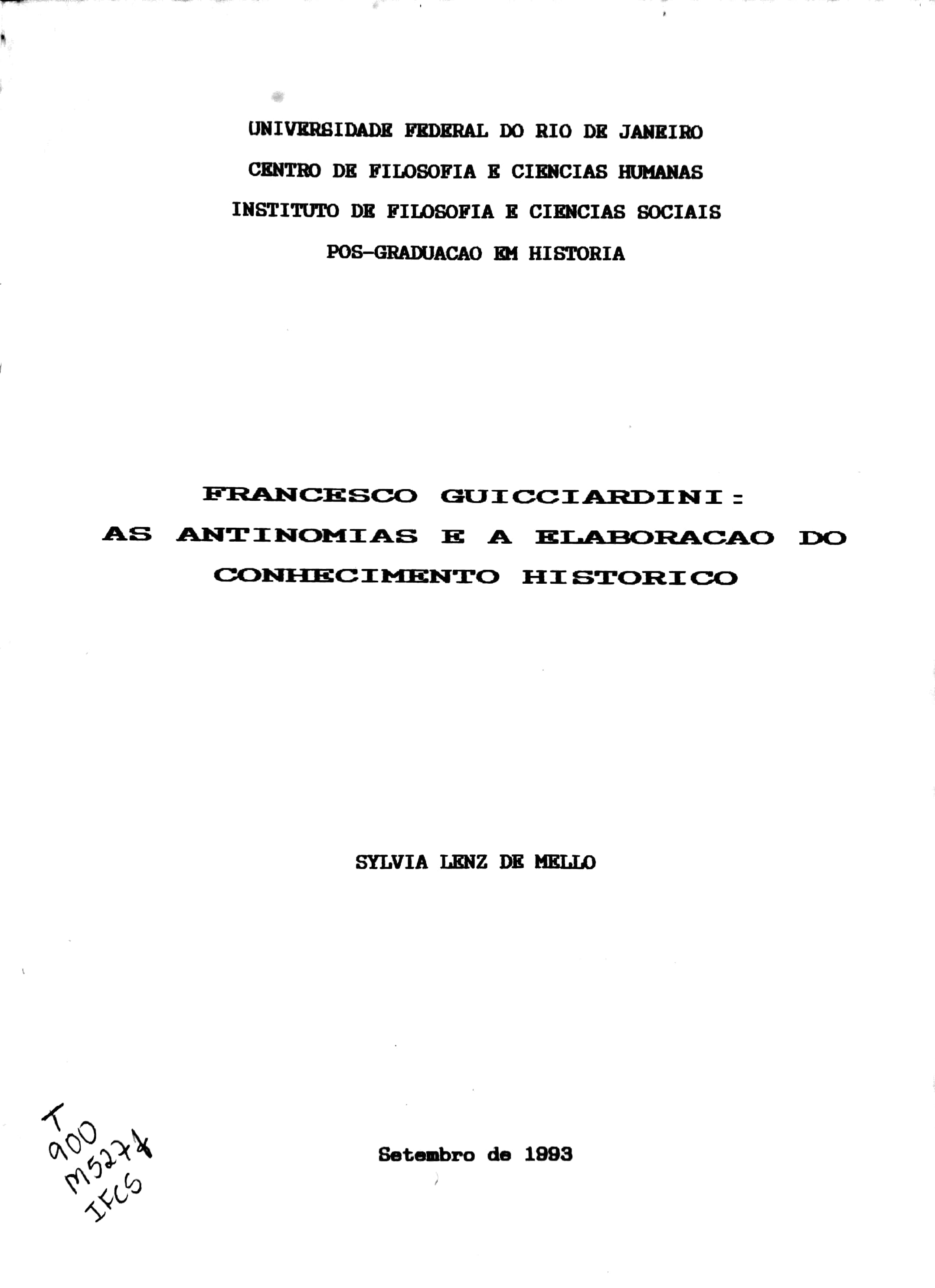 Francesco Guicciardini, florentino, viveu de 1483 a 1540 em uma época politicamente conturbada na Itália. Diplomata, político, e historiador, soube captar, com apurada sagacidade, os problemas de seu tempo; a ambição, a hipocrisia, a luta desenfreada pelo poder. A historiografia considera F. Guicciardini como o primeiro historiador a escrever uma história universal desvinculada da fundamentação teológica medieval. Na obra magna, Storia d’ Italia, trata não só dos problemas italianos, como também sabe relacioná-los as conjunturas européias da época. Elabora uma historia criteriosa; a narrativa, embora densa, prima pela forma crítica com que trata dos assuntos humanos. Apesar da preocupação em se ater aos fatos, Guicciardini não deixa de inserir certos elementos irracionais, tais como a fortuna, o destino, a interferência dos astros. Extrapolando o pensamento político de seu contemporâneo N. Maquiavel, Guicciardini entende que o poder é ambicionado não só pelo príncipe, mas também por outros de seus detentores, como os Papas, os cardeais, o povo, os luteranos. |