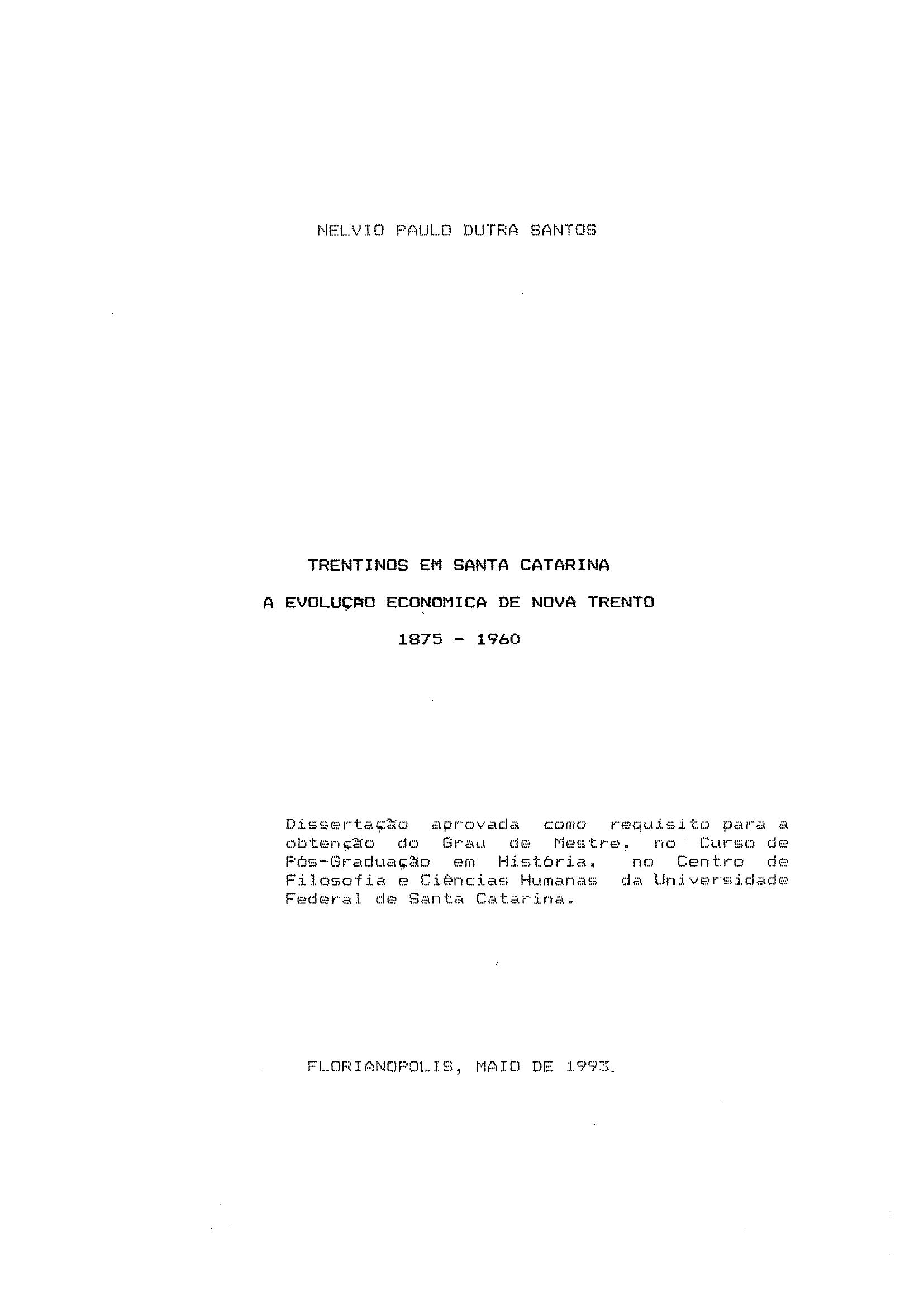 Em 1875 e anos seguintes, milhares de famílias de etnia italiana, de cidadania austríaca, foram locados no Vale do Rio Tijucas, no Distrito Colonial de Nova Trento, próximo ao litoral da então Província de Santa Catarina. Esta se encontrava em franco progresso, participando de um sistema de trocas com outras províncias e países da região do Rio da Prata, principalmente como fornecedora de alimentos. Naquele vale, rico em madeiras e de solo pobre e fortemente ondulado, o imigrante italiano, vindo da região do Trento, grupo majoritário num contingente em que participavam o luso-brasileiro, o alemão e o polonês, sofreu com a inadaptação de suas culturas tradicionais ao clima e ao mercado. No comércio formou-se a liderança social, econômica e política da comunidade. Foi o comerciante que fez a ponte entre aquela comunidade e o mundo exterior. A indústria neotrentina foi ligada, predominantemente, à madeira e à alimentação. As técnicas de transformação ainda estavam no estágio artesanal e, como nessa área vigorou o conservadorismo, isto não foi ultrapassado. Não foi diferente na agricultura, onde havia uma baixa produtividade e as terras enfraqueciam a cada ano. Os êxodos no campo foram constantes e se acentuaram nas décadas de quarenta e sessenta. Não obstante a citação constante desses fatos em muitas fontes, se quis, neste trabalho, entender como se deram as relações das variáveis que estão presentes em toda história econômica: o homem, o meio, o mercado, as ideologias, a evolução histórica, social e cultural, a evolução política e as mudanças técnicas. Para essa análise foi adotada um método que privilegia a perspectiva estrutural, mais adequado para encontrar as respostas às indagações formuladas. |