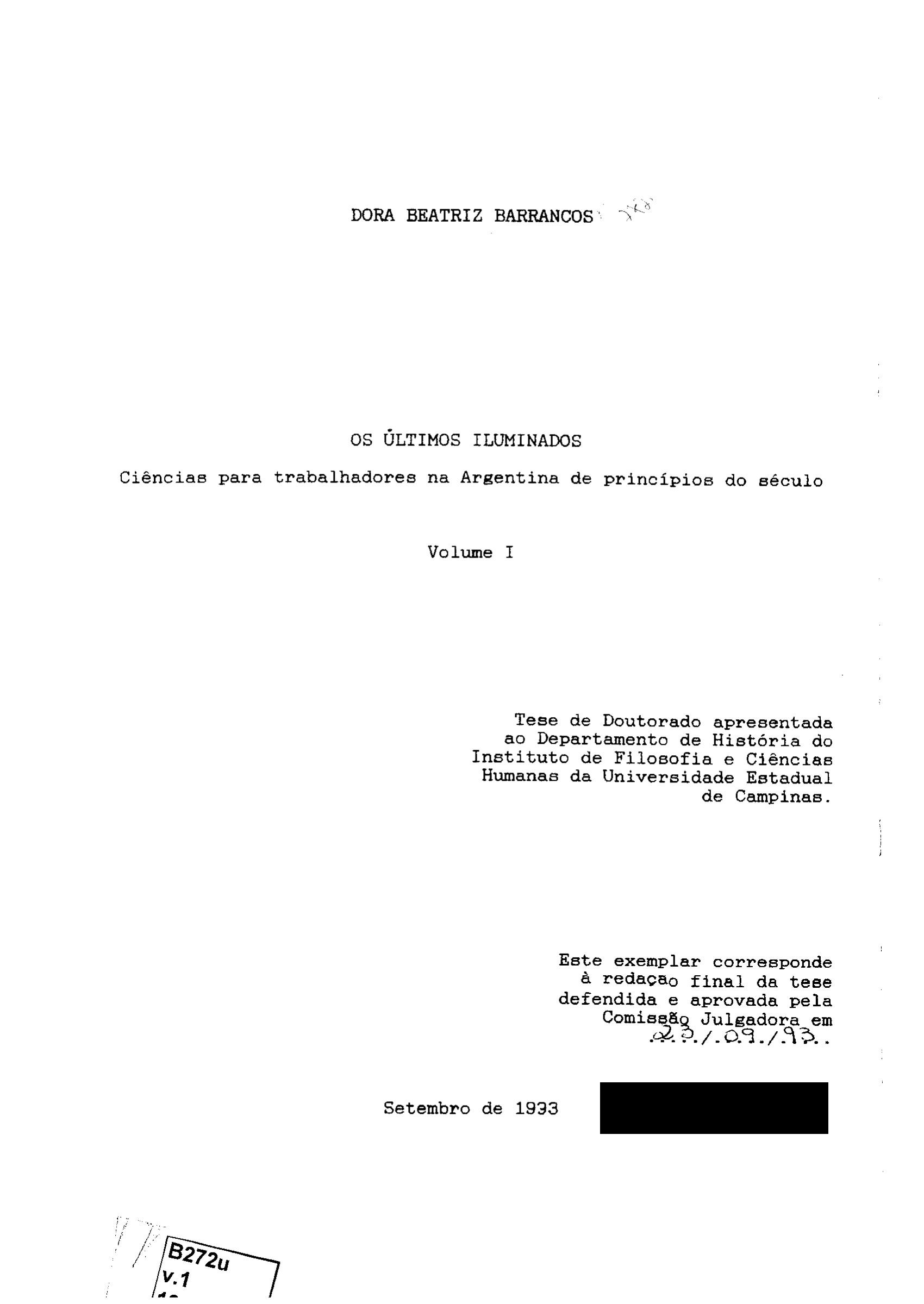 Dora Beatriz Barrancos (Orientador: Michael McDonald Hall)