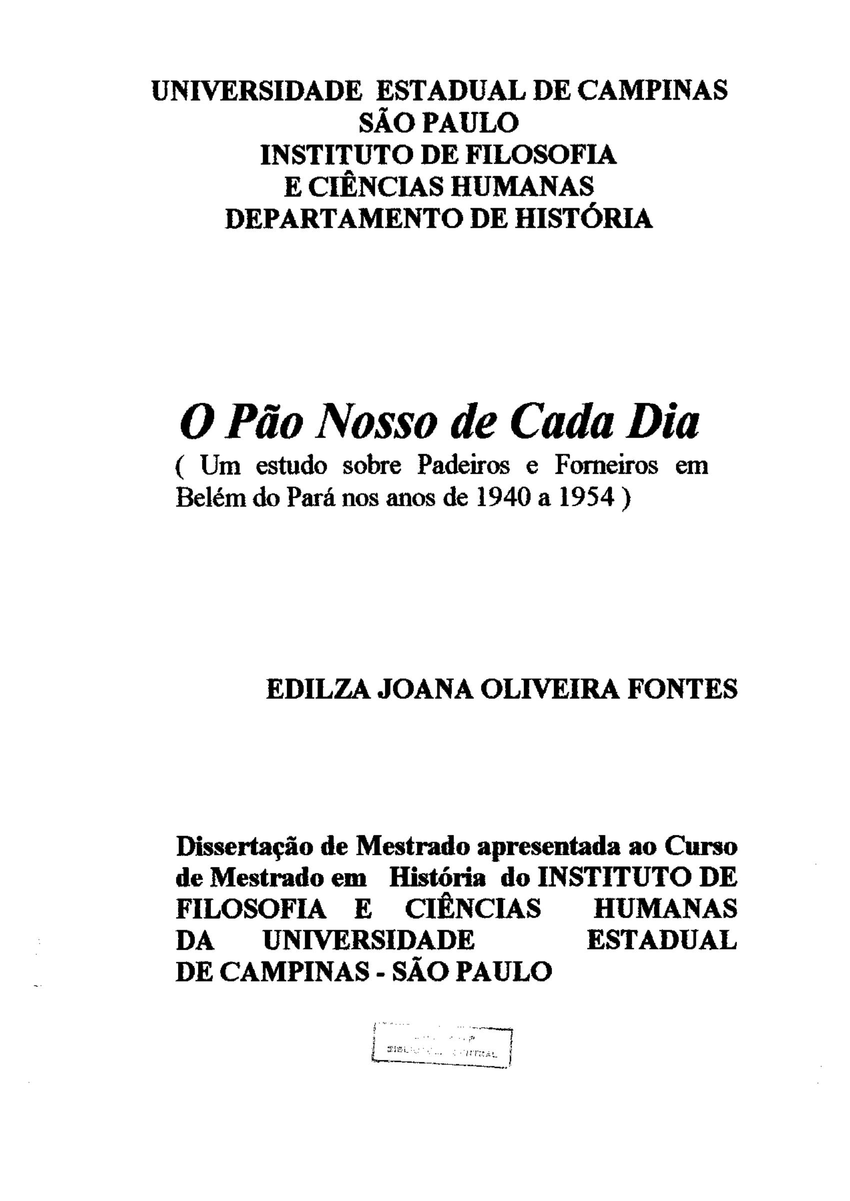 O Pão Nosso de Cada Dia (Um Estudo sobre Padeiros e Forneiros em Belém do Pará nos Anos 1940 a 1954)