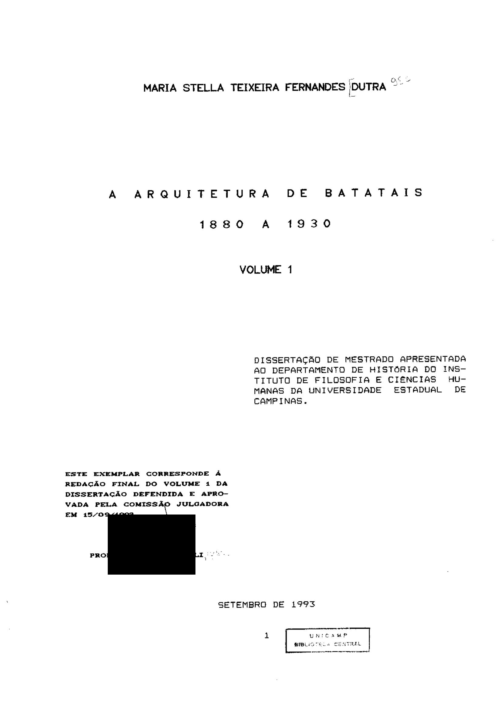 Maria Stella Teixeira Fernandes Dutra (Orientador: Jorge Sidney Coli Jr)