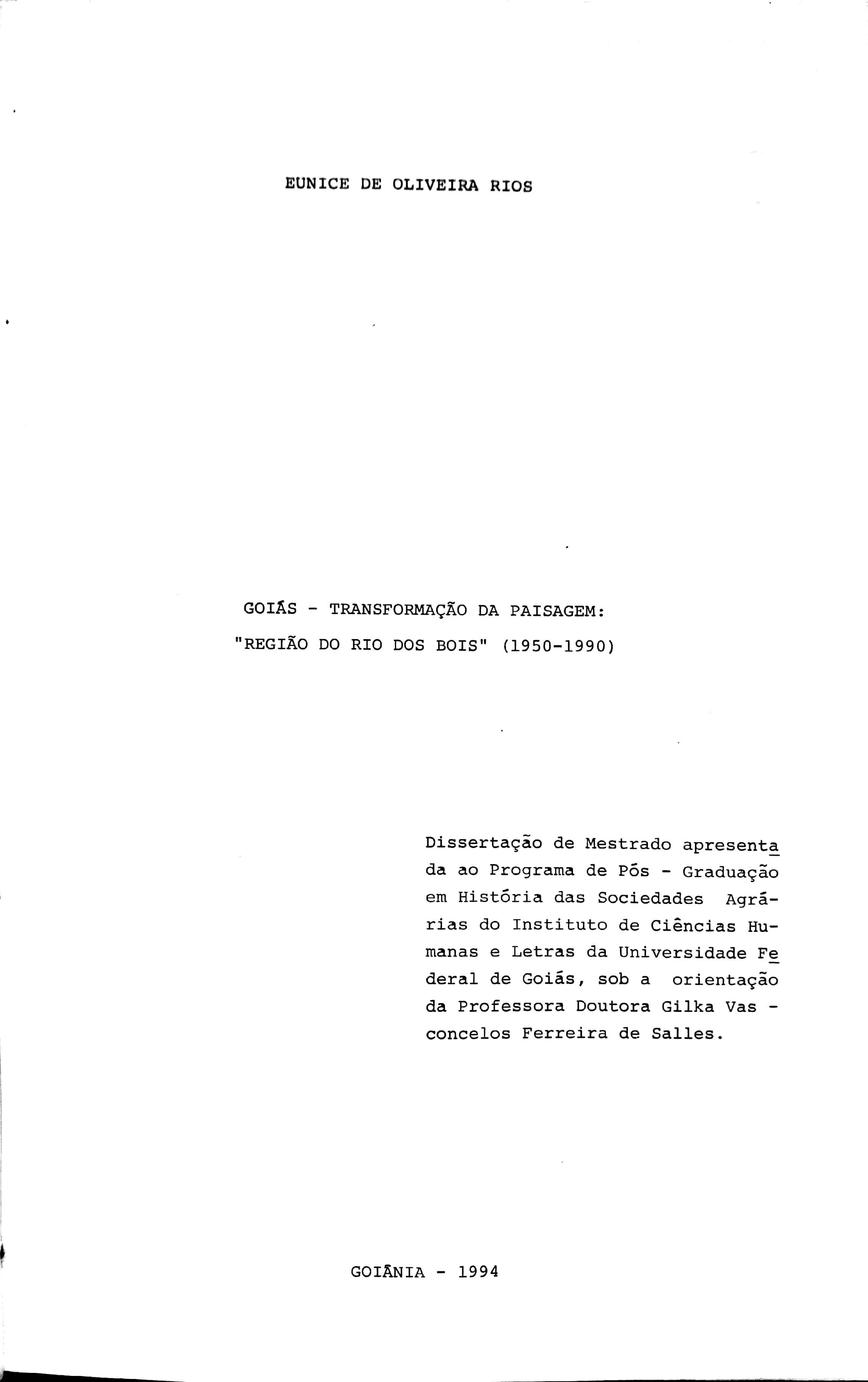 Objetiva conhecer a dinâmica da ocupação do solo em Goiás, utilizando-se de documentos antigos e atuais disponíveis, cartas topográficas, mapas temáticos e históricos e, principalmente, os produtos de sensores remotos como os utilizados pelo RADAMBRASIL. Através destes, tornou-se possível o mapeamento da vetação natural e do uso do solo, complementados pela análise histórica do processo de ocupação do território na Região do Rio dos Bois, constata que as matas, a princípio, eram consideradas um obstáculo à ocupação humana. Num segundo momento elas valorizaram o espaço. Na seleção de terras as ocupadas por matas eram vistas como as mais férteis, o que provocou uma migração intensa de mineiros e paulistas para o centro-sul goiano, com destaque para a "Região do Rio dos Bois". Destacava-se, plantava-se lavouras nos primeiros anos e quando o solo mostrava "sinais de cansaço"era ocupado por pastagens, em seguida procurava-se outras áreas de mata e se repetia o processo. Com a modernização agrícola nos últimos anos, a utilização das terras atingiu um ponto máximo de desmatamento. Do antigo e pujante "Mato Grosso Goiano" resta somente o nome e pequenos resíduos que deveriam ser poupados. O reflorestamento, insignificante na área analisada, ocorreu em outras regiões do Estado. Mineração, pecuária, agricultura, urbanização se sobrepuseram, resultando numa degradação ambiental sem precedentes na "Região do Rio dos Bois". |