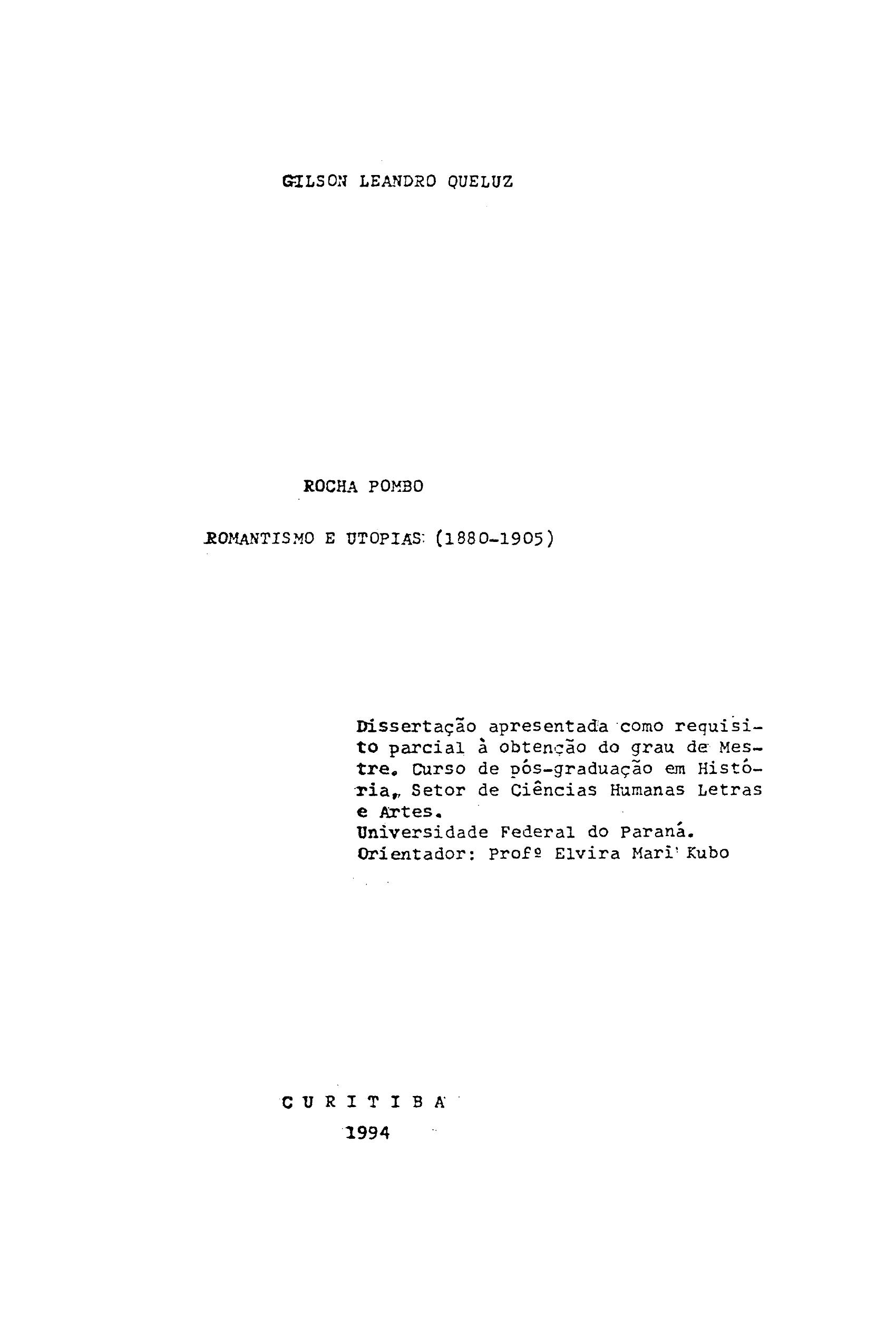 Rocha Pombo: Romantismo e Utopias (1880-1905)