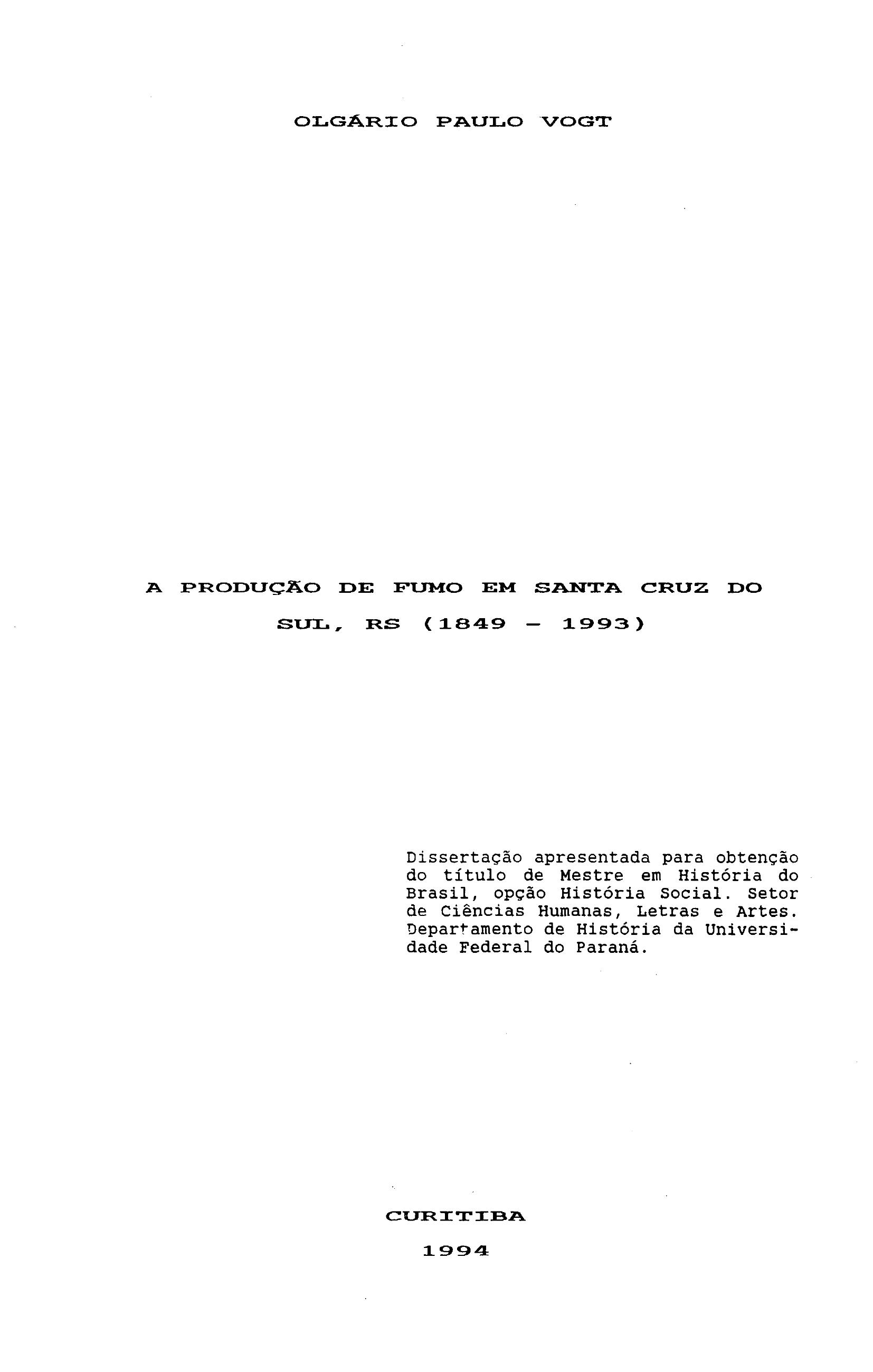 A Produção de Fumo em Santa Cruz do Sul, RS (1849-1993)