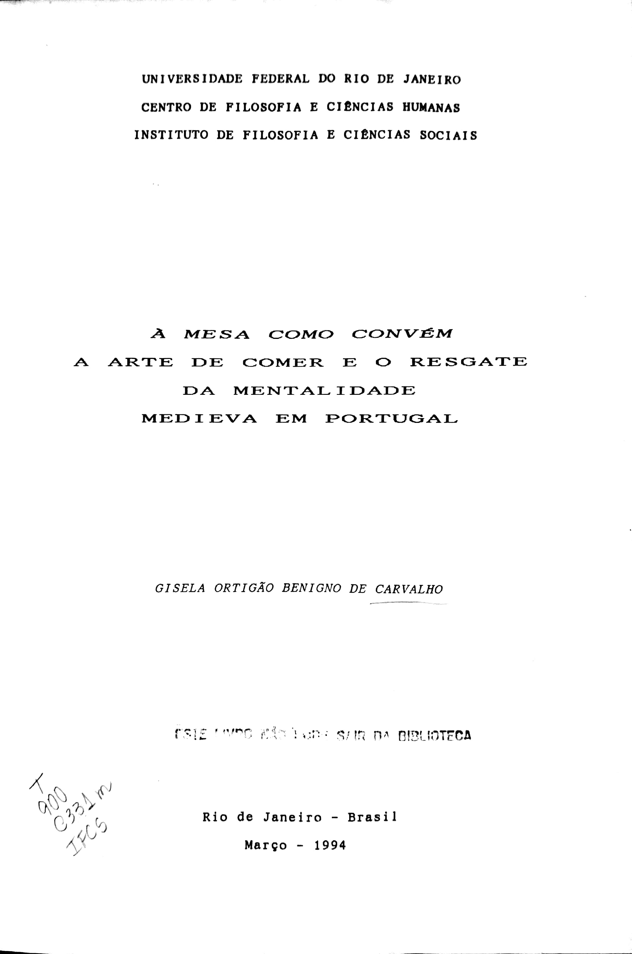 A Mesa como Convém: A Arte de Comer e o Resgate da Mentalidade Medieva em Portugal