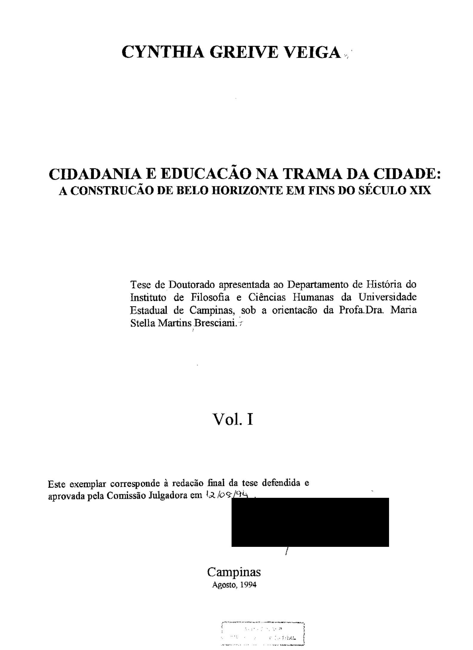 Cynthia Greive Veiga (Orientador: Maria Stella Martins Bresciani)
