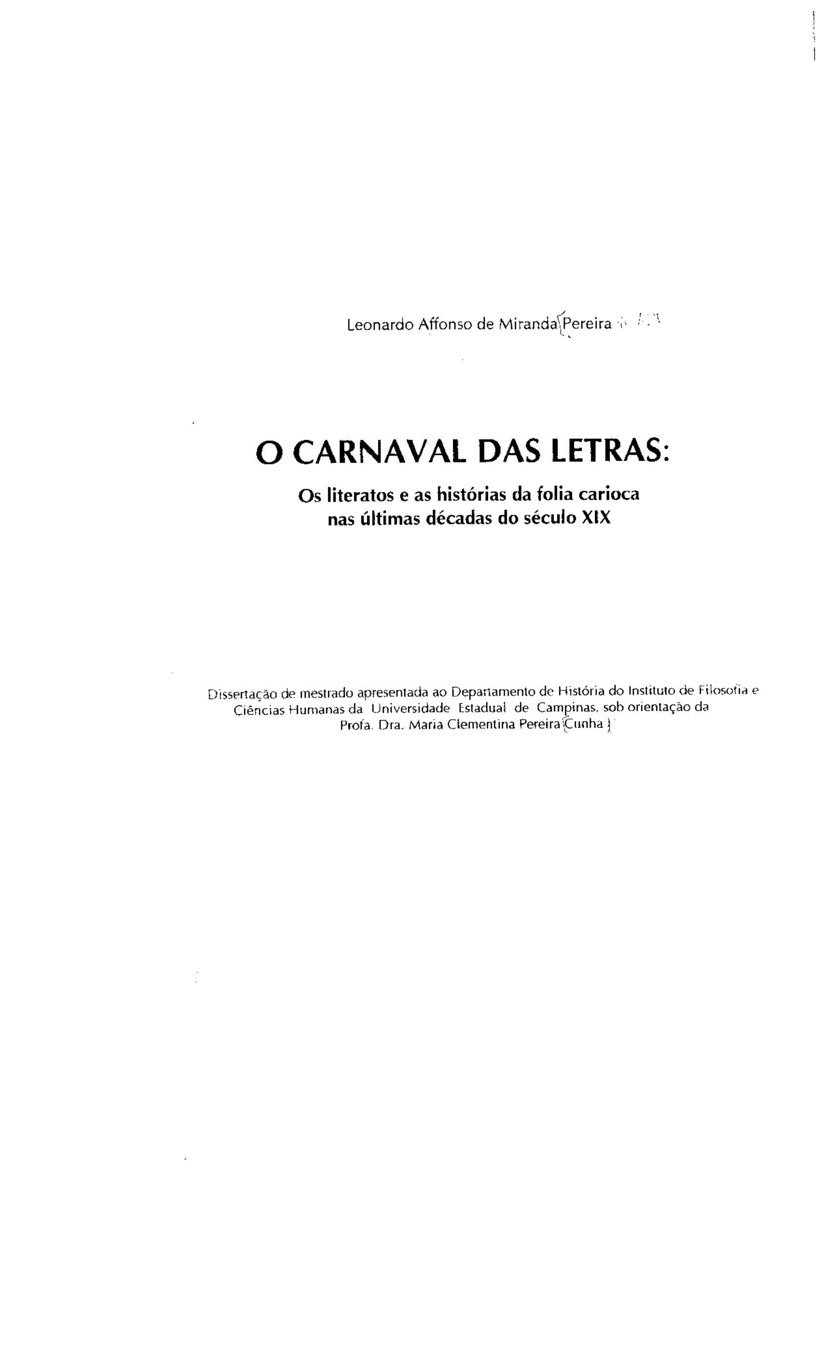 Leonardo Affonso de Miranda Pereira (Orientador: Maria Clementina Pereira Cunha)