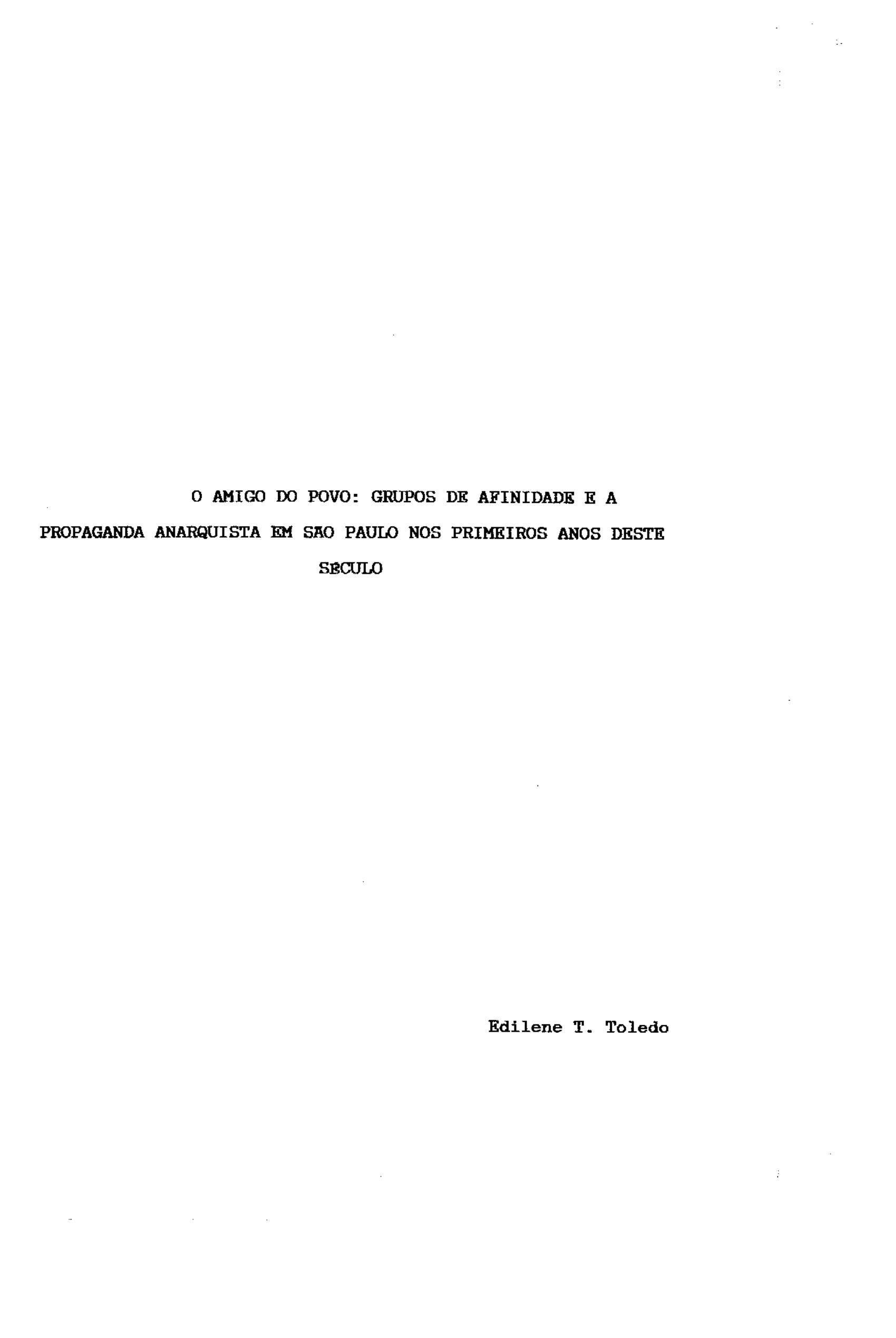 O Amigo do Povo: Grupos de Afinidade e a Propaganda Anarquista em São Paulo nos Primeiros Anos deste Século