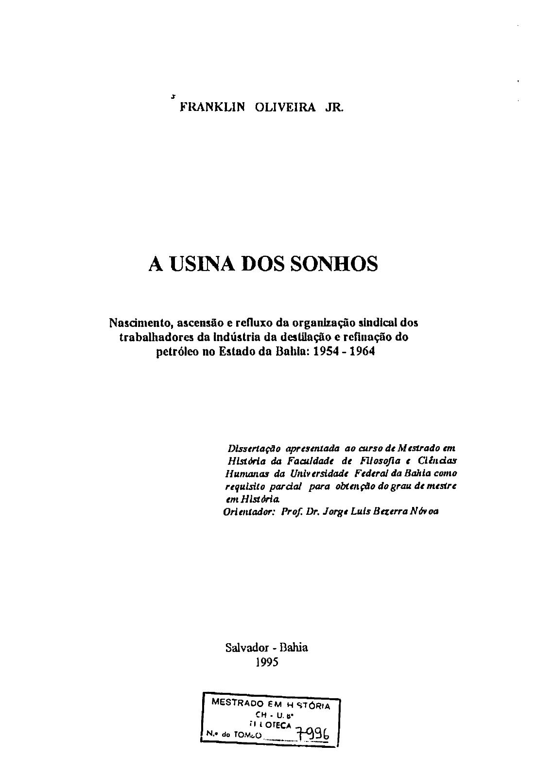 Este trabalho tem o objetivo de contribuir para o resgate da história dos petroleiros da Bahia, mais particularmente os que trabalharam na Refinaria de Mataripe no período entre 1954 a 1964 e que construíram sua organização sindical. A escolha desta experiência se deve a vários fatores, entre os quais o fato de que a refinaria se constituiu num marco para a industrialização em bases modernas na Bahia e no Nordeste, acelerando o seu desenvolvimento econômico e social. Analisa-se um processo no qual trabalhadores foram capazes de pôr em prática estratégias de ascensão social que os colocam como exemplo a ser seguido por outros na Bahia e a nível nacional. Busca-se desvelar o nível de consciência que eles tiveram das chamadas determinações estruturais e como se inseriram nas lutas de classe e frações de classes num período que merece uma revisão critica dos cientistas sociais. Apesar de os sindicatos, ao longo do período, estarem limitados pela estrutura sindical atrelada ao Estado, exercendo o papel de correia de transmissão do partido e do Estado, pode-se verificar a autonomia relativa desses trabalhadores que, por fora e por dentro do pacto populista, chegaram a trabalhar nos limites desse projeto, rompendo, em certos momentos, com sua lógica, embora não tendo chegado a se constituir num projeto próprio e mais abrangente dos trabalhadores. O pacto social em curso só se tornou possível com o seu progressivo "enquadramento político" e a articulação das bandeiras gerais com as estruturais da categoria. No tratamento do tema, é utilizado um método dialético para reconstruir a totalidade através da articulação das diferentes dimensões dos fenômenos, apreendendo as relações que estabelecem entre si. Busca-se assim, na práxis, uma relação de diálogo fazendo com que as hipóteses, seu tratamento e as conclusões surjam não só da vida concreta mas também de um novo patamar de generalizações que se busca abstrair no estudo de outras realidades e contribuições de caráter universal. Nos anos posteriores, os novos caminhos seguidos pela economia e pela política nacional se encarregaram de ir reduzindo o peso específico desses trabalhadores na indústria do petróleo nacional, tornando necessárias outras formas de ação e luta. O resgate desse período se propõe, porém, a incorporar os elementos da tradição de organização desenvolvida em uma área do Nordeste do país à história geral da luta dos trabalhadores. |