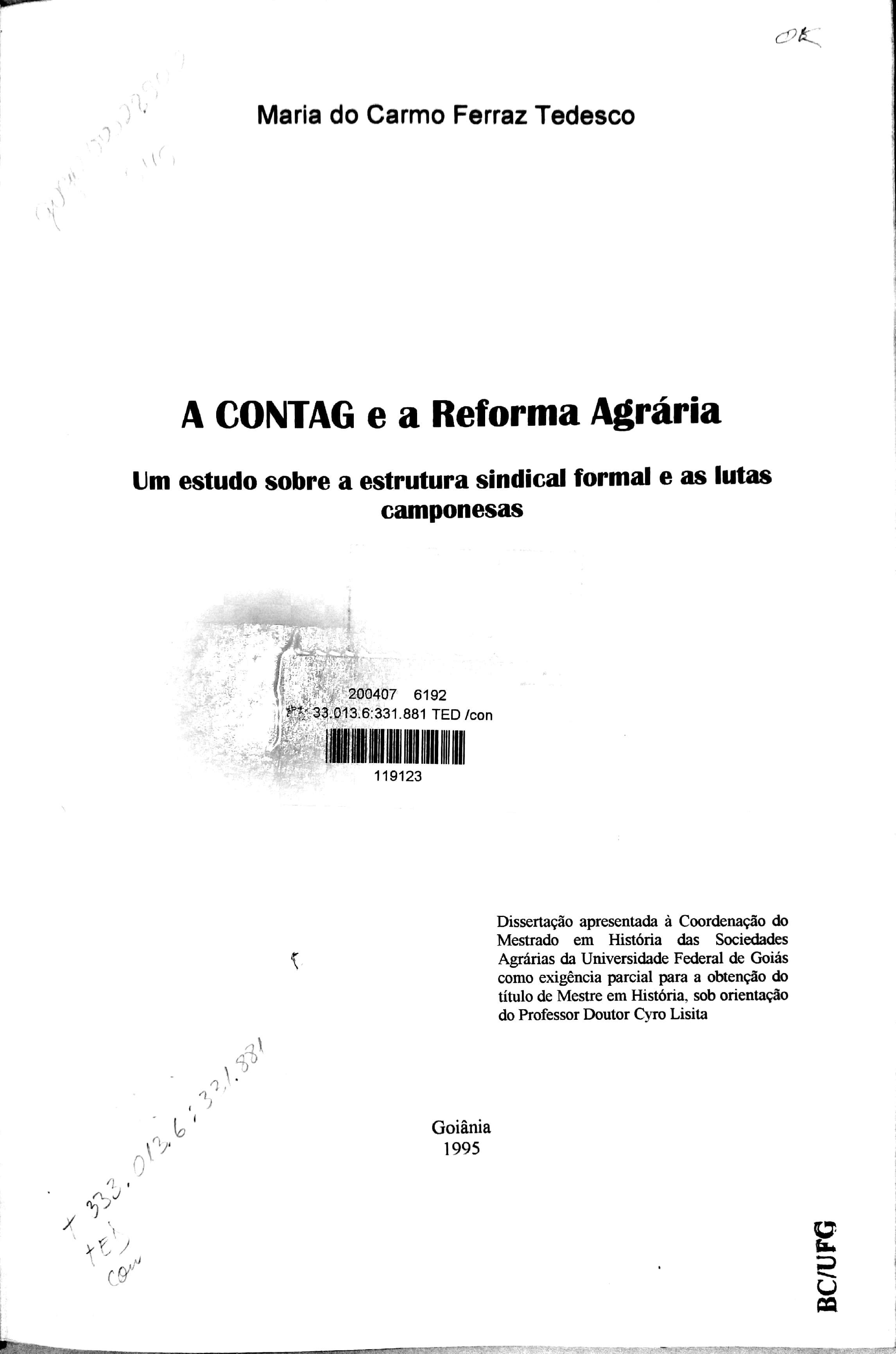 Estuda o movimento dos trabalhadores rurais, tomando como referência a Confederação Nacional dos trabalhadores da Agricultura - CONTAG. Criação em 1963, foi institucionalizado o Movimento Trabalhador Rural. Primeiramente, a Confederação, conhecida pelas lideranças trabalhistas, buscava promover a unidade e a intervenção sistemática do movimento camponês sobre o Estado que se encontrava fragilizado pela crise econômica, sendo obrigado a fazer novas alianças políticas. Mas com o golpe de 1964, a CONTAG reorienta-se, tornando-se assistencial. Assim, a CONTAG transforma-se em veículo estatal frente o trabalhador rural, sendo utilizada para integrar o camponês à sociedade brasileira. A política agrícola governamental modernizou o processo produtivo, mas manteve a estrutura fundiária, que era a causa da crise camponesa. Houve até mesmo maior concentração de terras, o que no final de 1970, intensificou os conflitos rurais. Assim, os trabalhadores rurais e entidades emergentes do campo cobraram da CONTAG uma representação mais combativa. Dentro desde teor a Reforma Agraria destaca-se como desenvolvimento econômico-social, transformando, em 1980, em instrumento de cidadania, onde o trabalhador, democraticamente, expressa suas reivindicações. Em 1988, com a Constituinte, dificulta-se tais transformações. O Trabalhador busca, assim, um caminho próprio para atingir seu objetivo. |