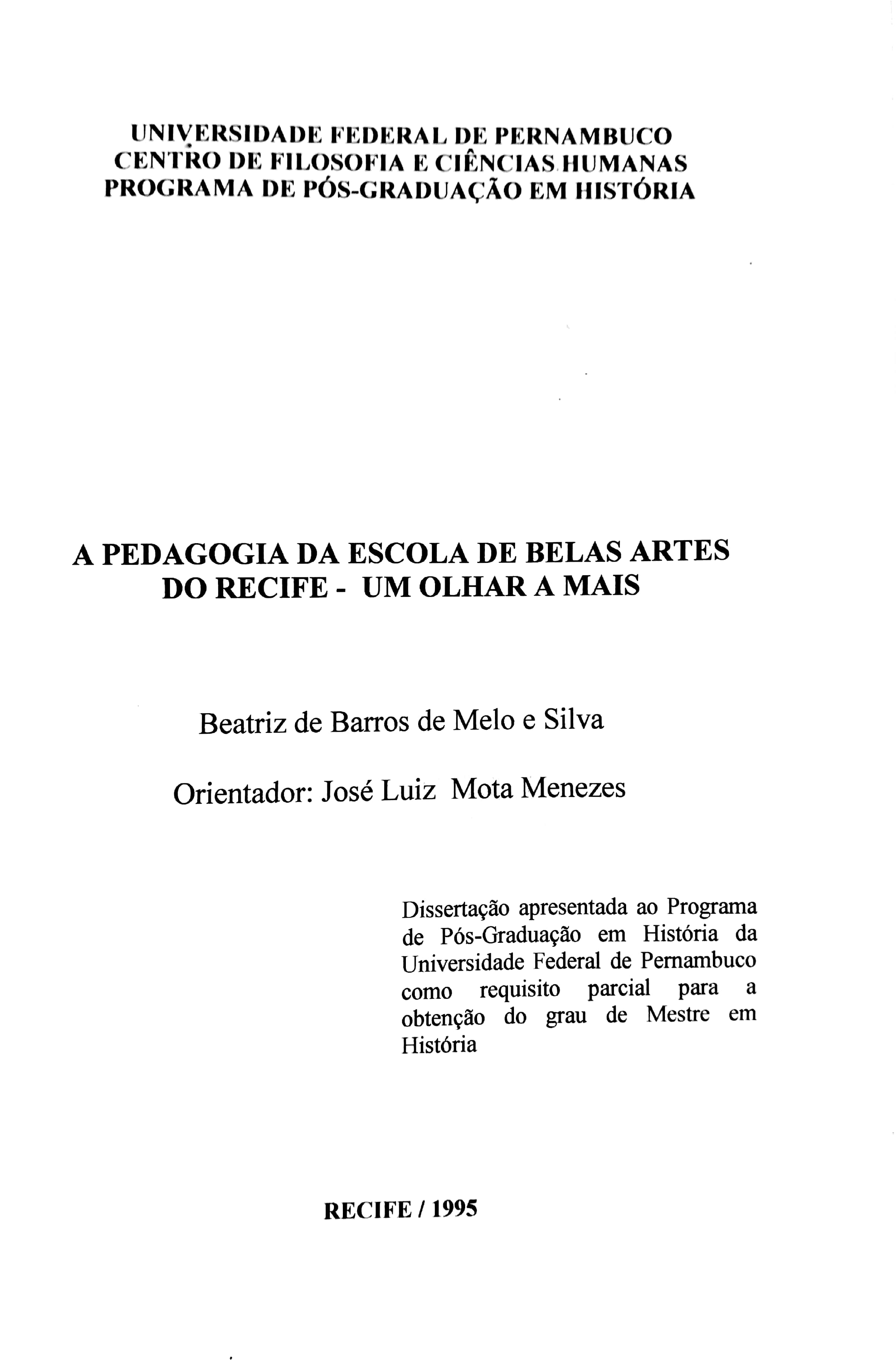 A Pedagogia da Escola de Belas Artes do Recife - Um Olhar a Mais