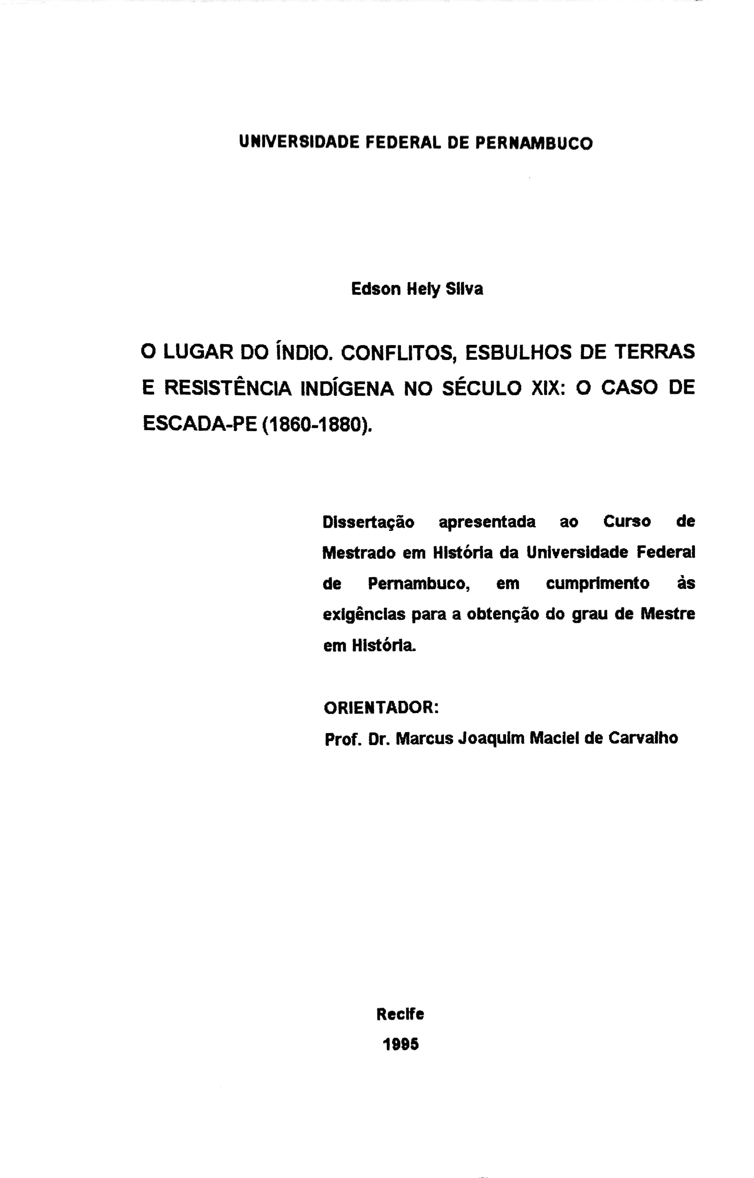 O Lugar do Índio. Conflitos, Esbulhos de Terras e Resistência Indígena no Século XIX: O Caso de Escada-PE (1860-1880)